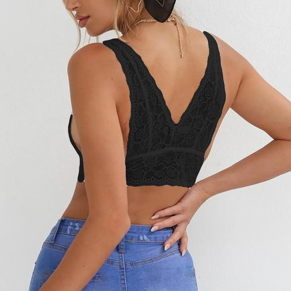 Новинка 2019, женский черный прозрачный кружевной бюстгальтер без косточек, бюстье, короткий топ, Cami, Белый Глубокий v-образный вырез, топы