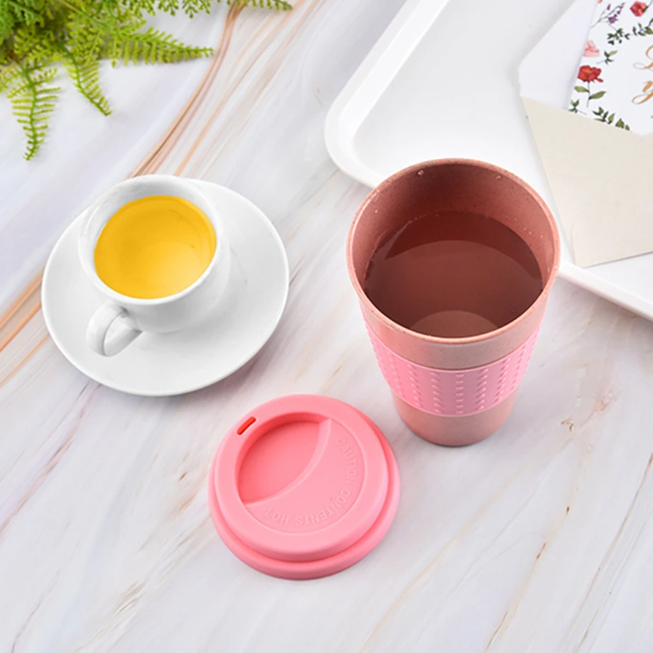 350 мл Пшеничная солома ПП кофейная чашка с силиконовой крышкой и рукавом
