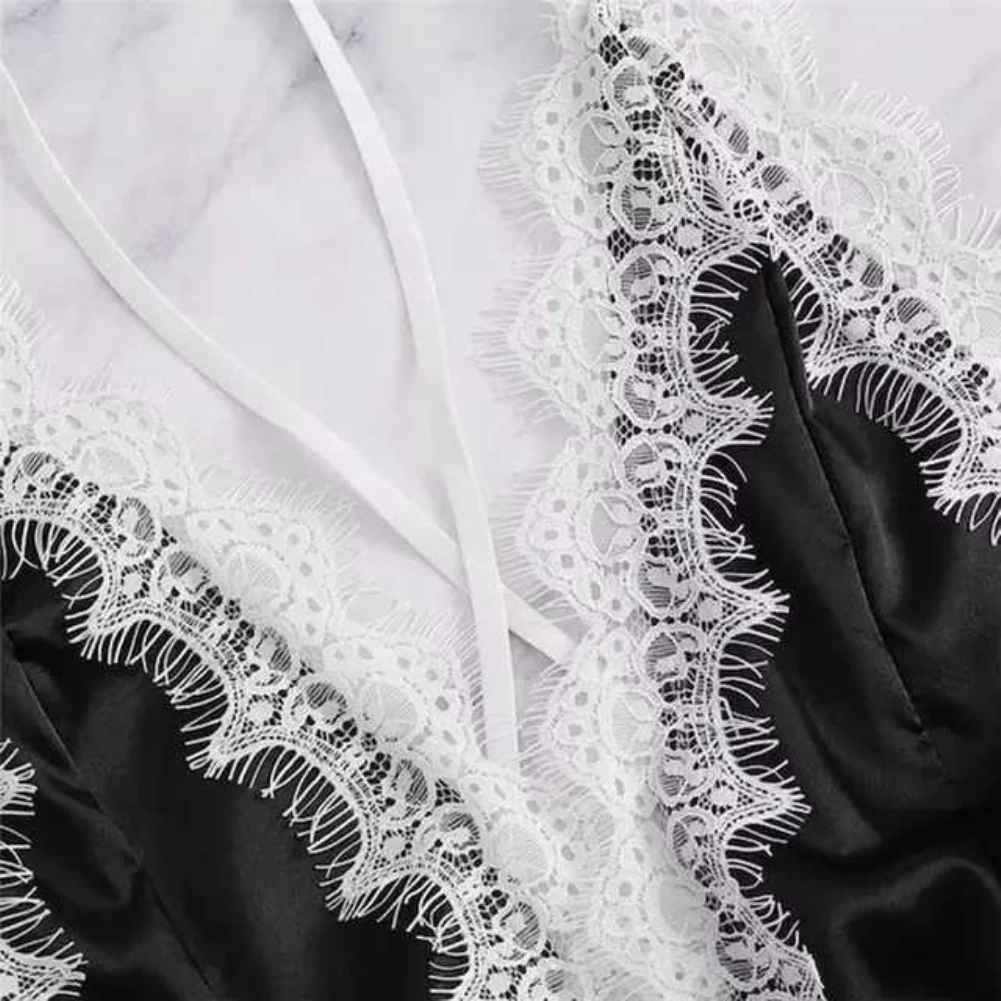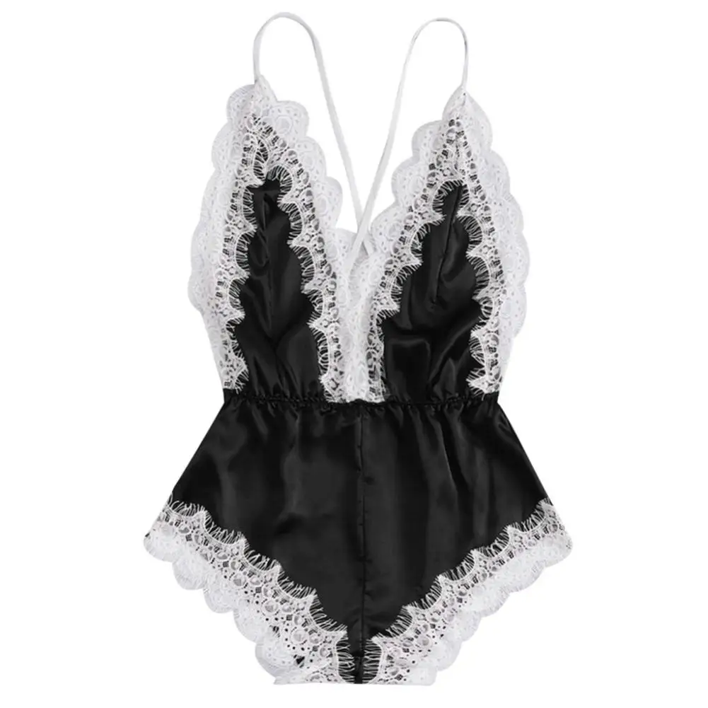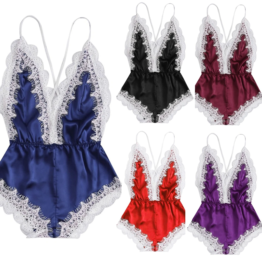 Сексуальный женский с кружевной отделкой Глубокий V без рукавов крест спинки боди пижамы Пижама