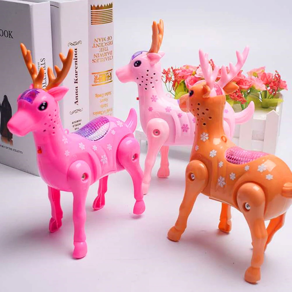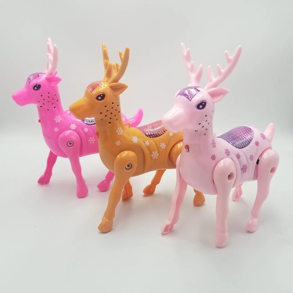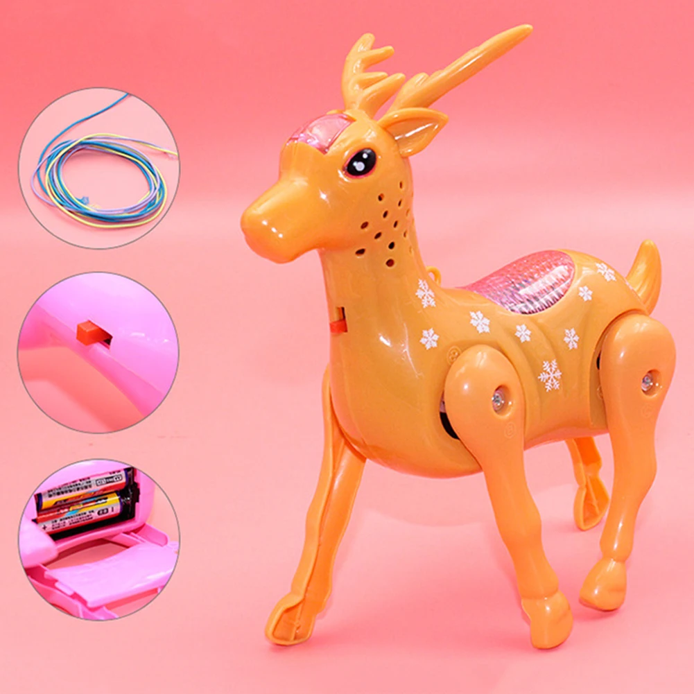 Детская светящаяся электрическая игрушка ходьба музыкальный светодиодный Сика олень животное игрушка с поводком Интерактивная детская игрушка с музыкальным светильник