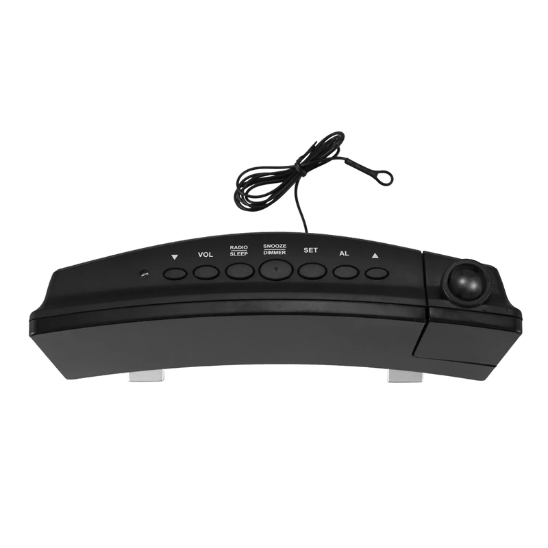 Новейший проекционный Будильник: разработан с вращающимся на 120 ° проектором (от-30 ° ~ 90 °) может проецировать время на потолок или стену в пределах 1,6 ~ 10 футов (0,5 ~ 3 м), когда вы лежите на кровати. Оптимальное расстояние проекции 7 ~ 10 футов. После длительного нажатия на кнопку проекции проекция поворачивается на 180 °.