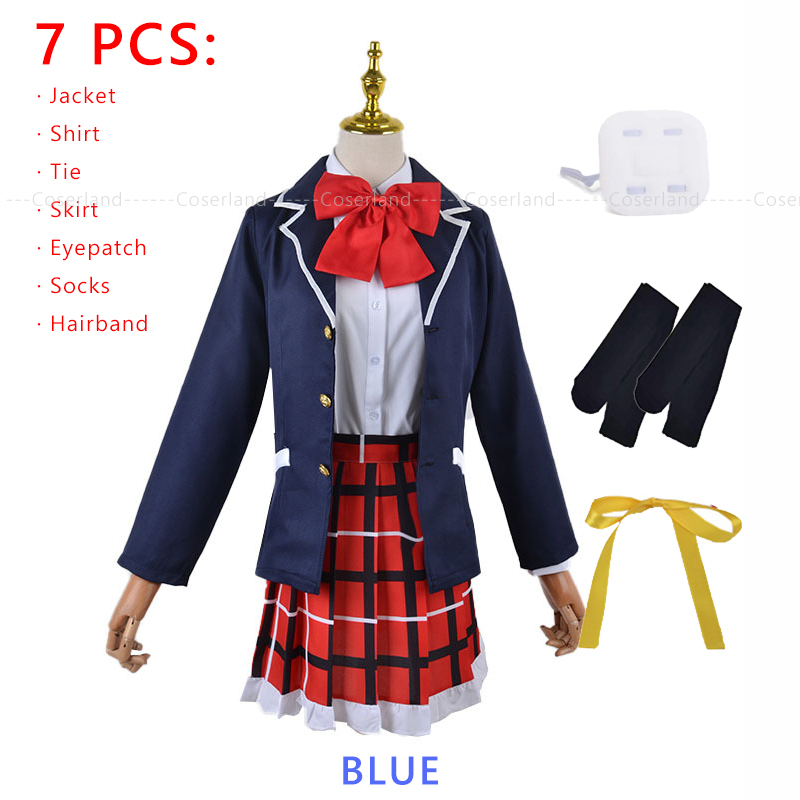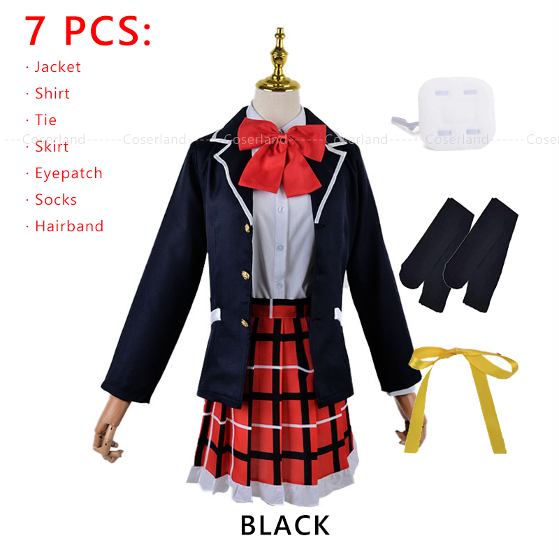 Костюм для косплея Rikka Takanashi с нашивкой на глаза, короткий темно-фиолетовый черный парик из аниме «Love Chunibyo Chuunibyou demo Koi ga Shitai»