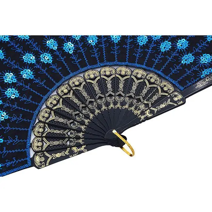 Material : Plastics, Cloth Color: Black, Blue, Multicolor, Green, Orange, Pink, Purple, Red, Rose Red, Royal Blue, White,Yellow Pattern: Peacock Feather Pattern Decoration: Sequins, Embroidery Folding Length: 23cm/9.1inches Opening Width: 42cm/16.5inches Application: Craft, Decoration, Gift Quantity: 1pcs Features: It is durable and elegant. Brings you a good mood for its beautiful embroidery design with sequins. Can be folding, very portable. A great cooling tool for summer. Delicate design shows excellent craftsmanship. Various color for you selection Package Content: 1 x Fan Note: Due to the difference between different monitors, the picture may not reflect the actual color of the item.