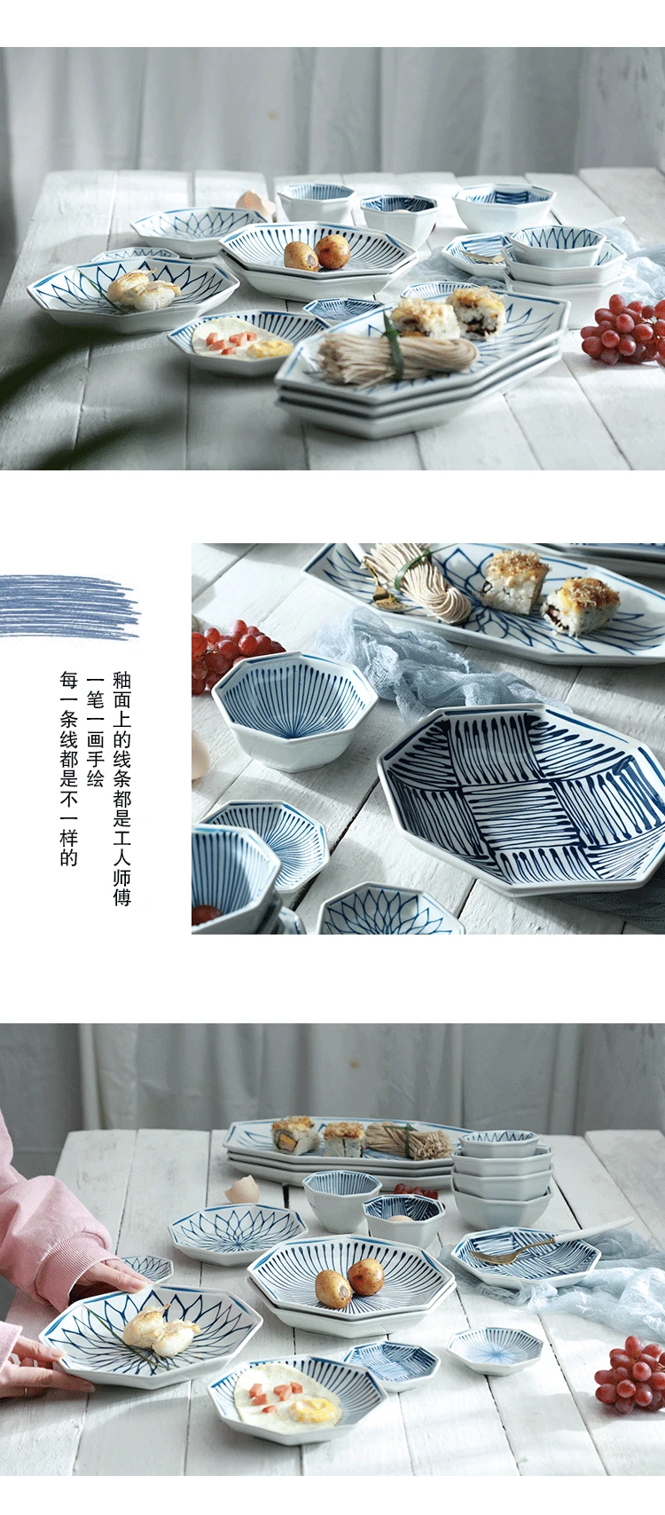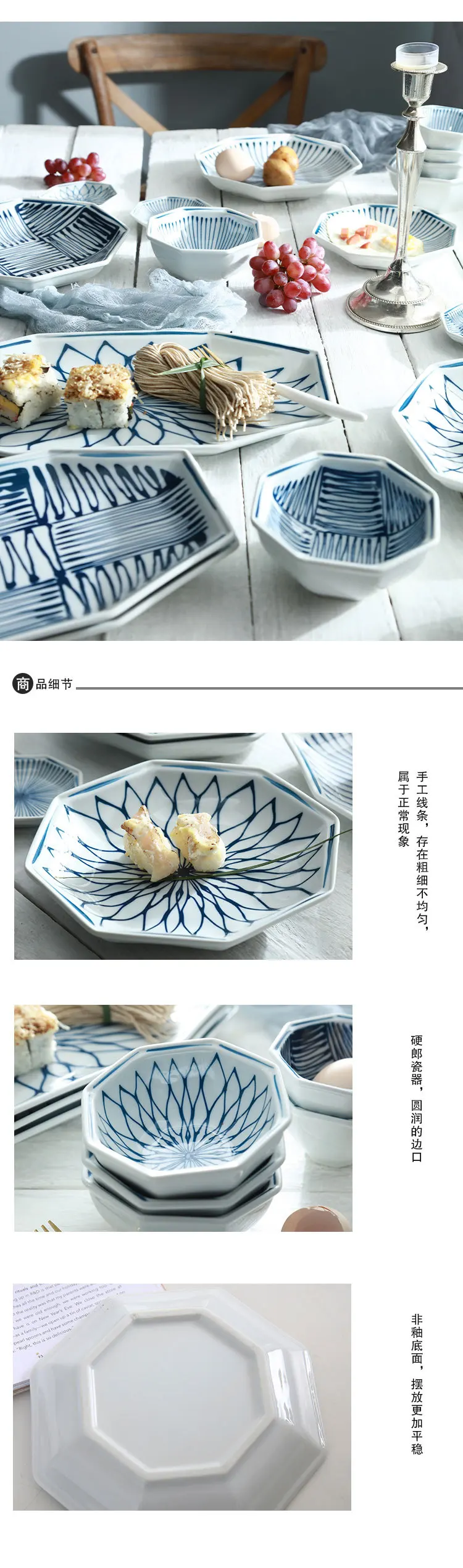 Керамическая посуда в японском стиле, восьмиугольная серия, высокотемпературная глазурь, миска, тарелка, Набор чашек и блюдца