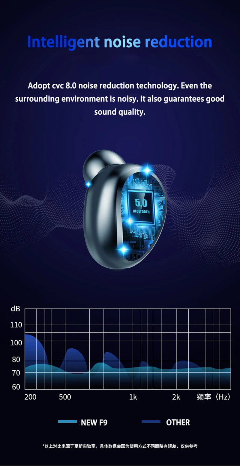 Модель продукта: F9 дыхательный светильник, сенсорные наушники Версия Bluetooth: V5.0 Версия шумоподавления: CVC8.0 Работа: сенсорный Материал наушников: материал ПК Расстояние Bluetooth: около 10 м/32,81фт. Водонепроницаемый: IPX5 Водонепроницаемый Способ подключения: один/двойной свободный в использовании Дисплей батареи: светодиодный цифровой дисплей Емкость одного уха: 50 мАч Емкость зарядного отсека: 2000 мАч Автоматическая загрузка: Поддержка Автоматическое Сопряжение: Поддержка Срок службы: около 120 часов (необходимо использовать с зарядной кабиной) Время работы в режиме разговора: 150 часов или около того (для использования с зарядной кабиной) Зарядка наушников около: около 25 раз Функция: воспроизведение паузы, ответ на вызов, вызов Siri, уменьшение громкости, переключение предыдущей песни, включение/выключение питания, автоматическое включение, Автоматическое Сопряжение, сенсорное управление, бинауральный вызов HD, интеллектуальное снижение уровня шума Применимо: умный мобильный телефон, планшет (Android / i0).