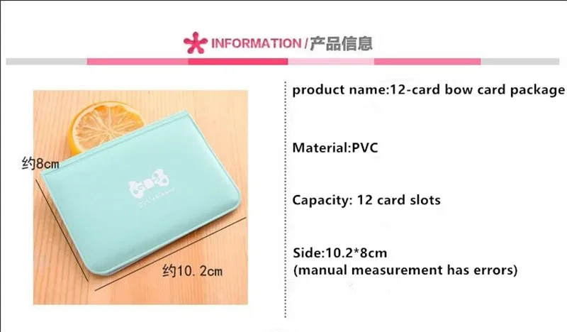 Тип товара: женский кошелек для визиток Материал: ПВХ Стиль: Повседневный, модный Функция: Модный милый женский мини-кошелек Цвет: розовый, черный, синий, красный Размеры: 10,2*8 см (Д * Ш * В)