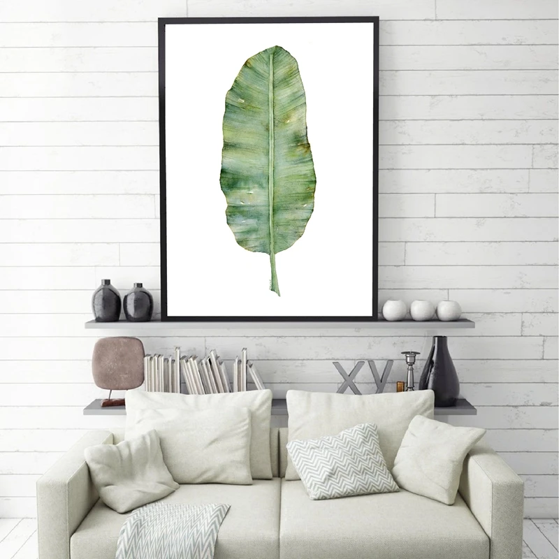 Картина на холсте с принтом листьев банана, зеленая растительная картина в форме листа, в стиле бохо, акварельная живопись, картина для ванной, Декор для домаФлуоресцентный