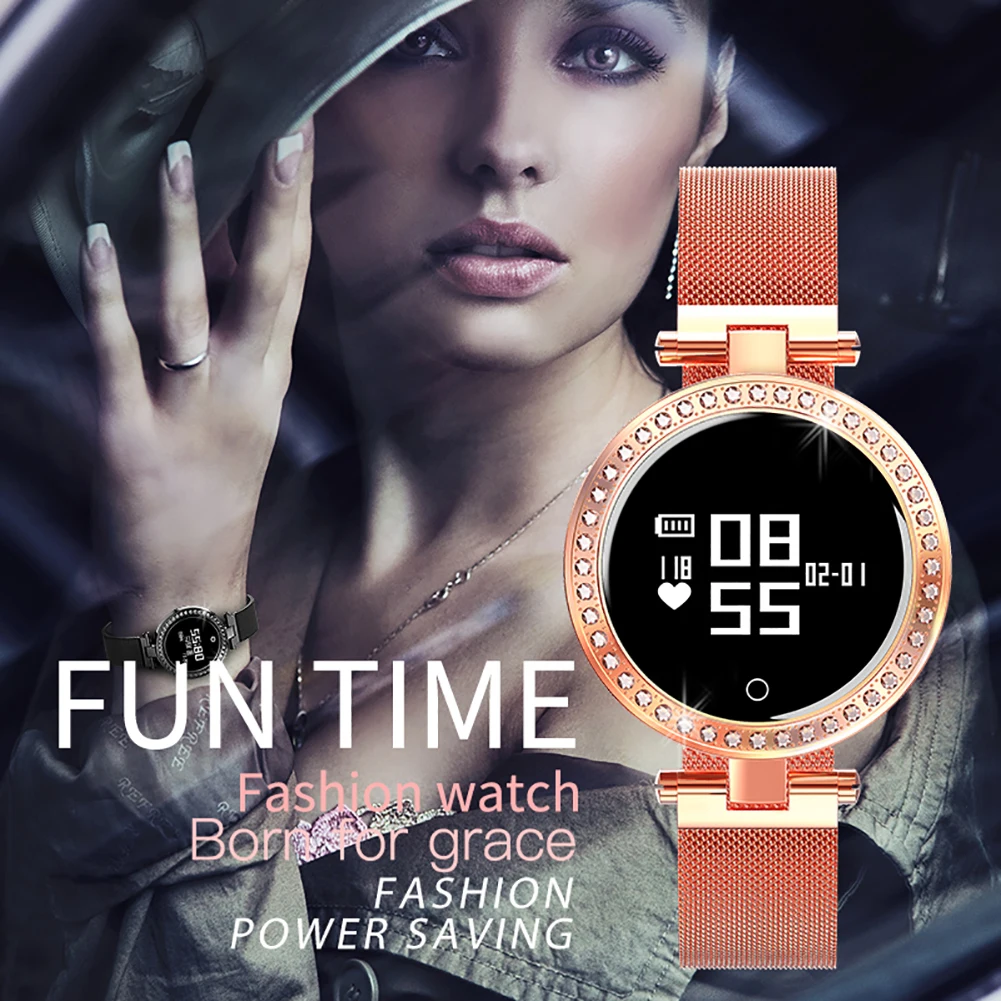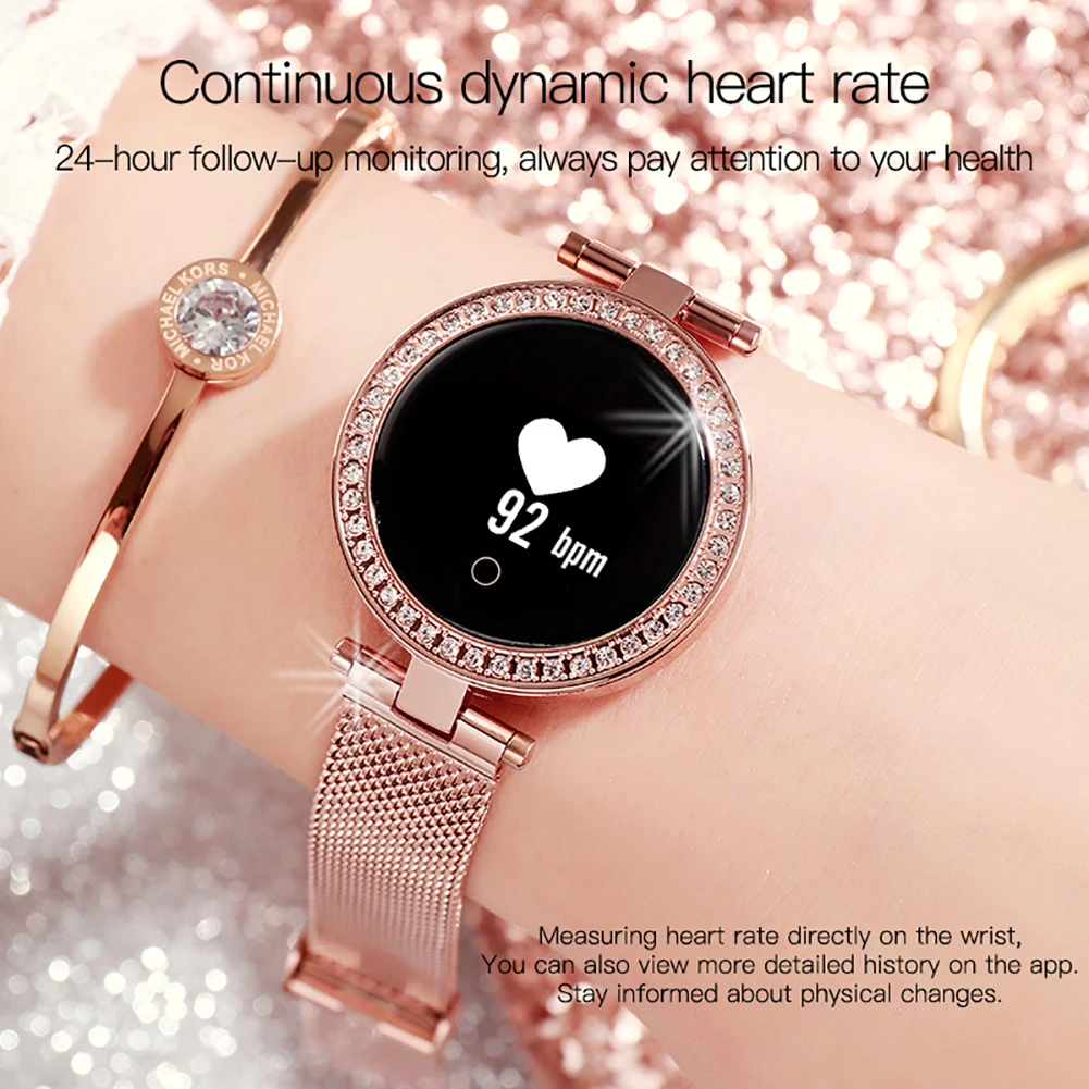 Особенности: водонепроницаемый, монитор здоровья, стразы, инкрустированные