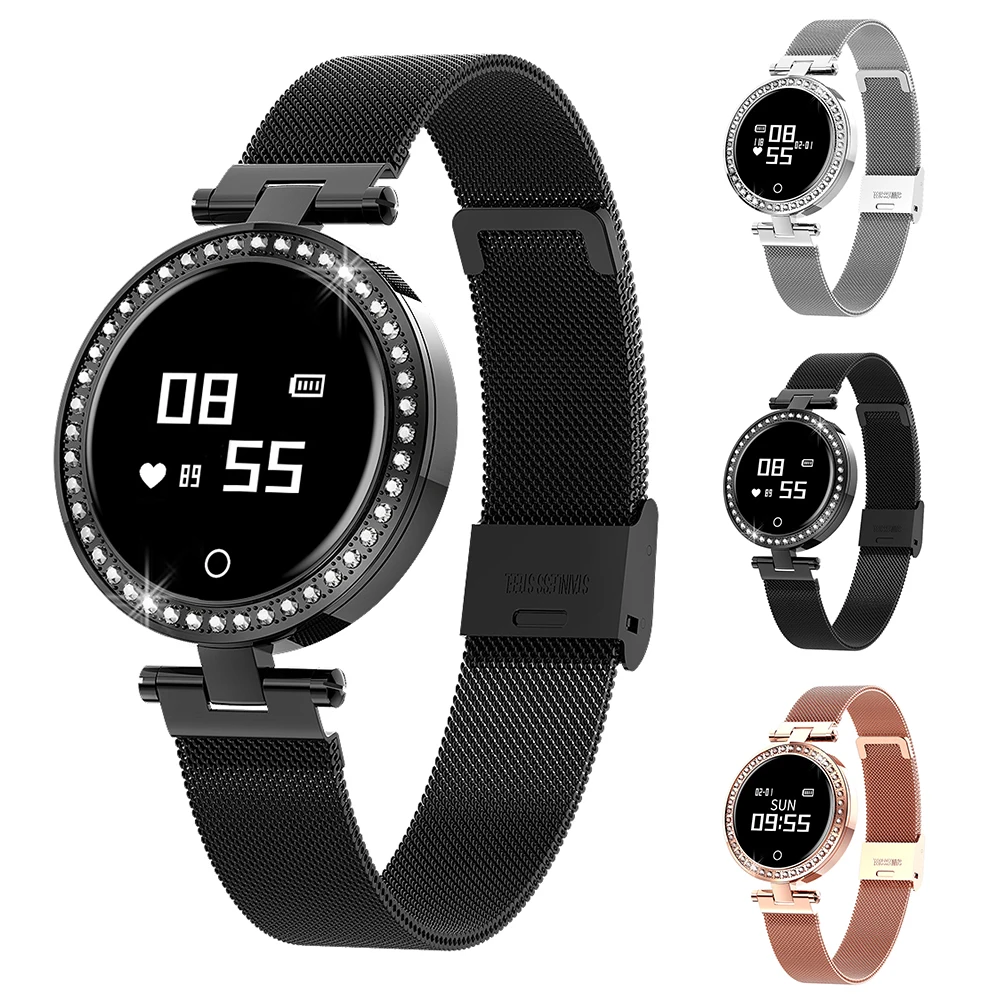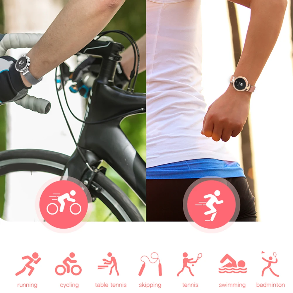 Женщины круглый экран Стразы монитор сердечного ритма во время сна Спорт Смарт Браслет