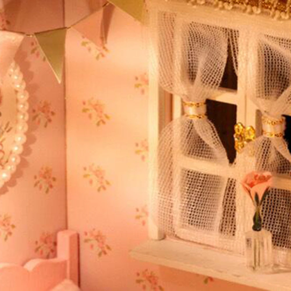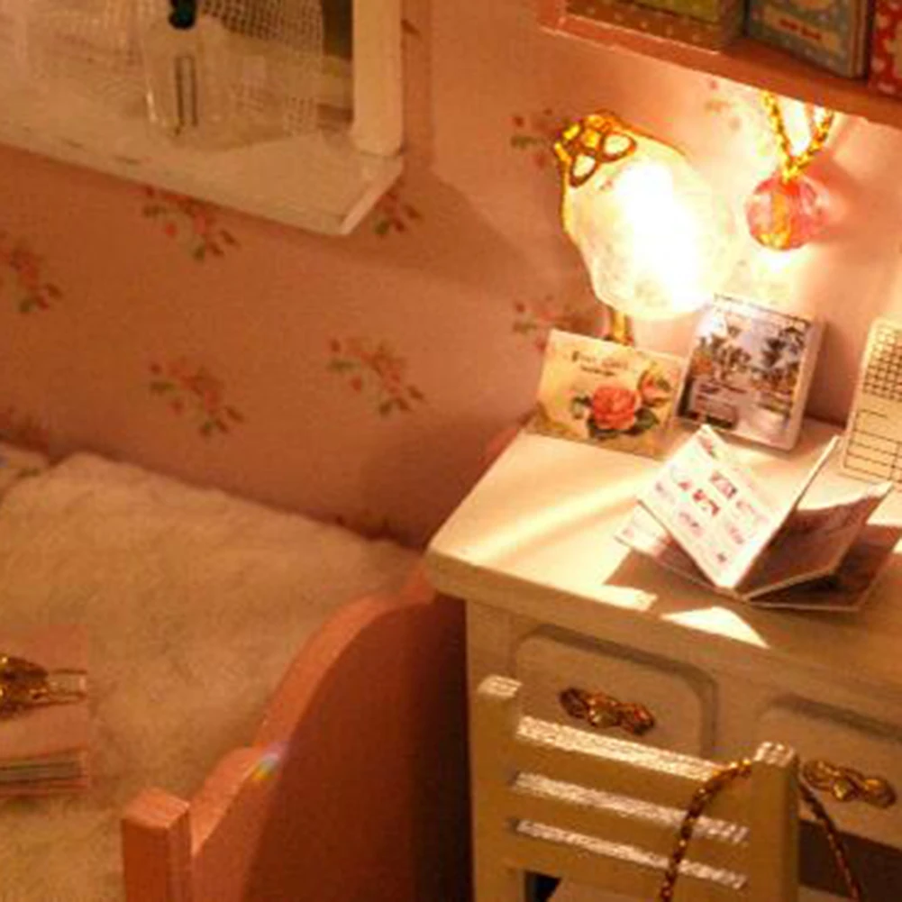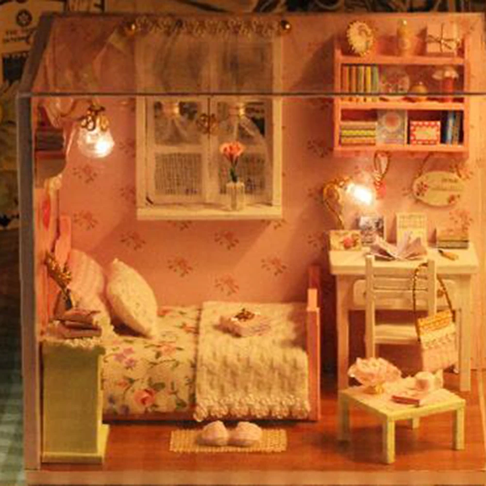 Кукольный домик мебель 3D Деревянный миниатюрный светодиодный кукольный домик для спальни DIY модель ручной работы поделки детская игрушка Рождественский подарок