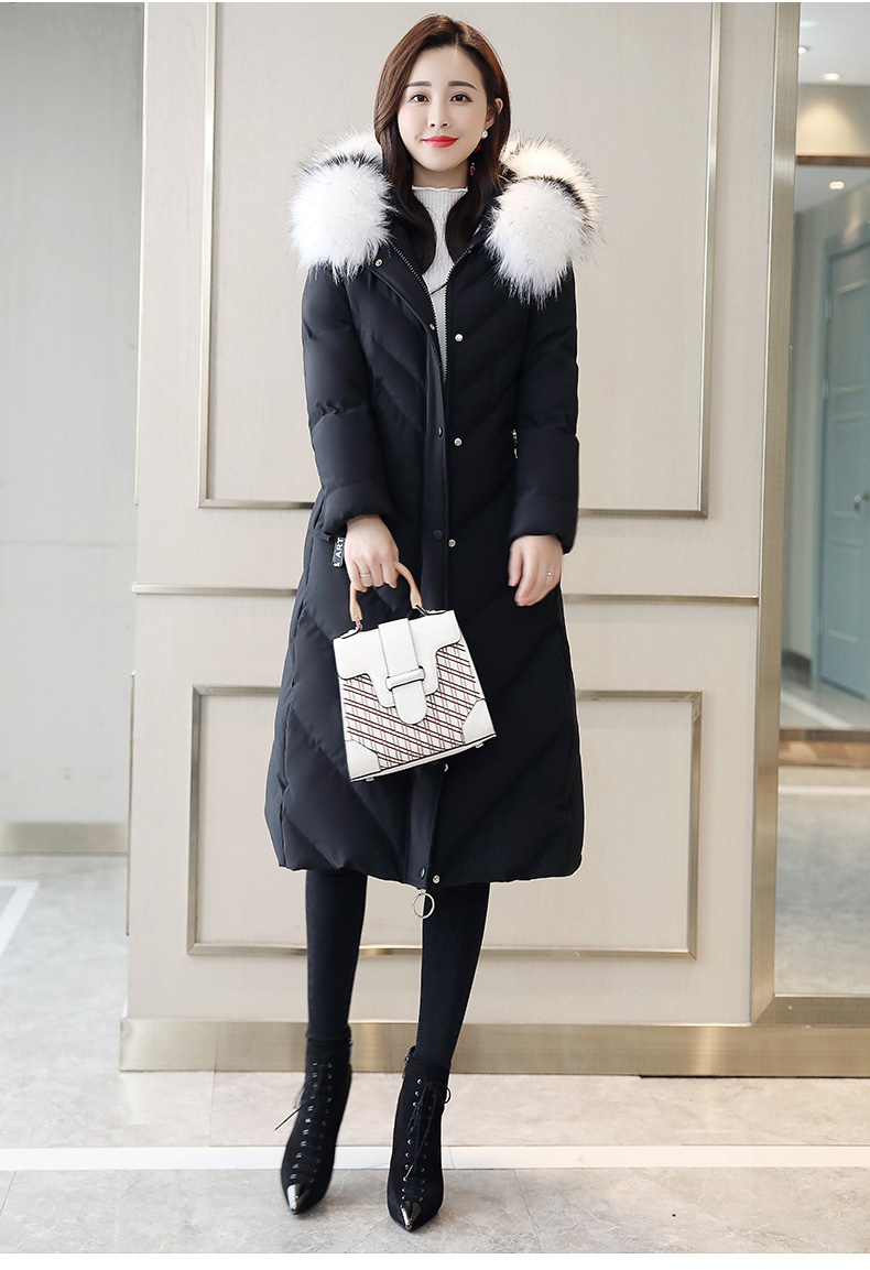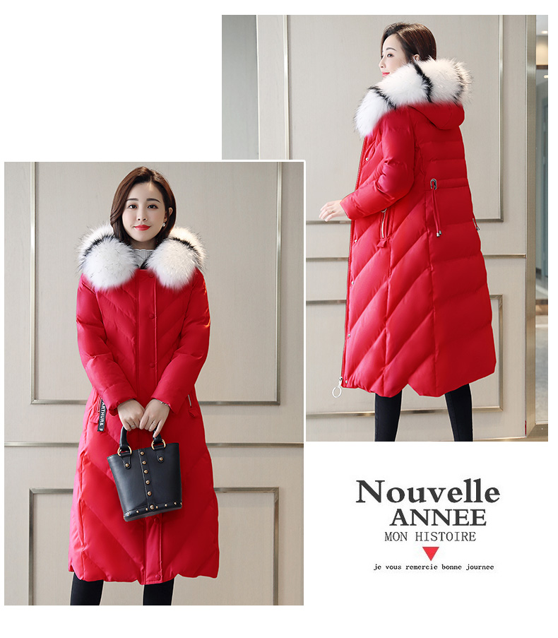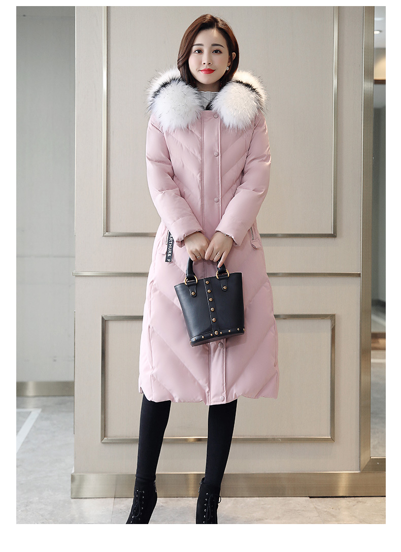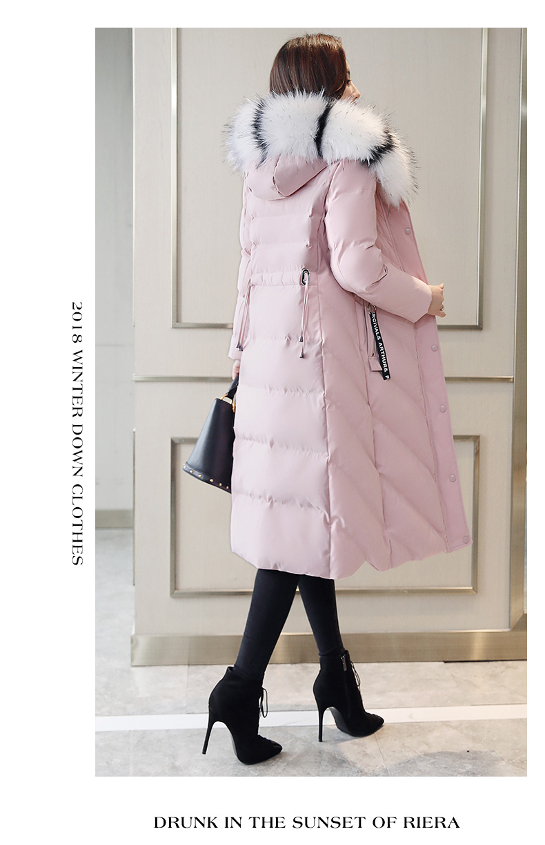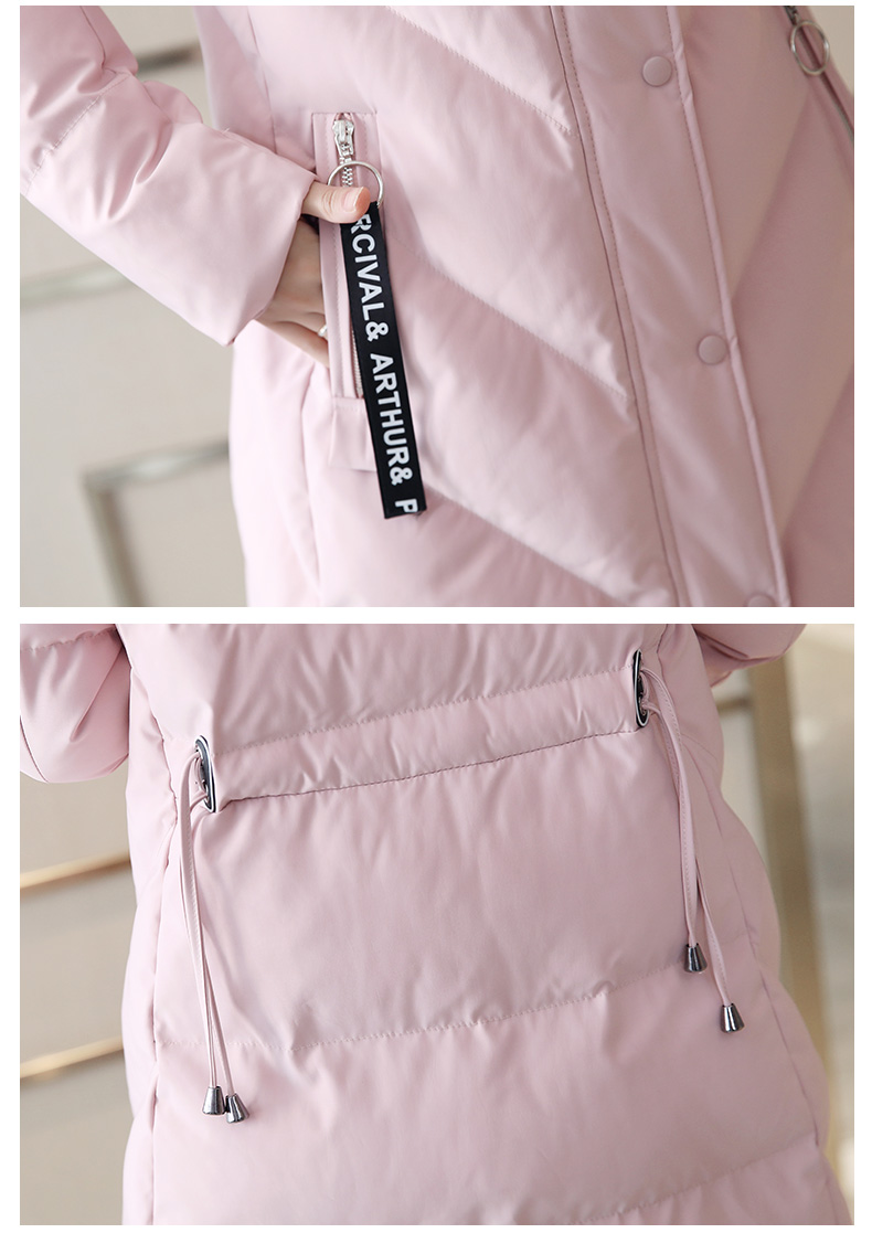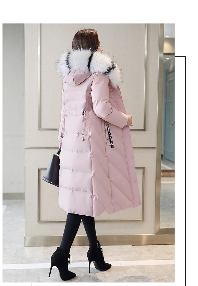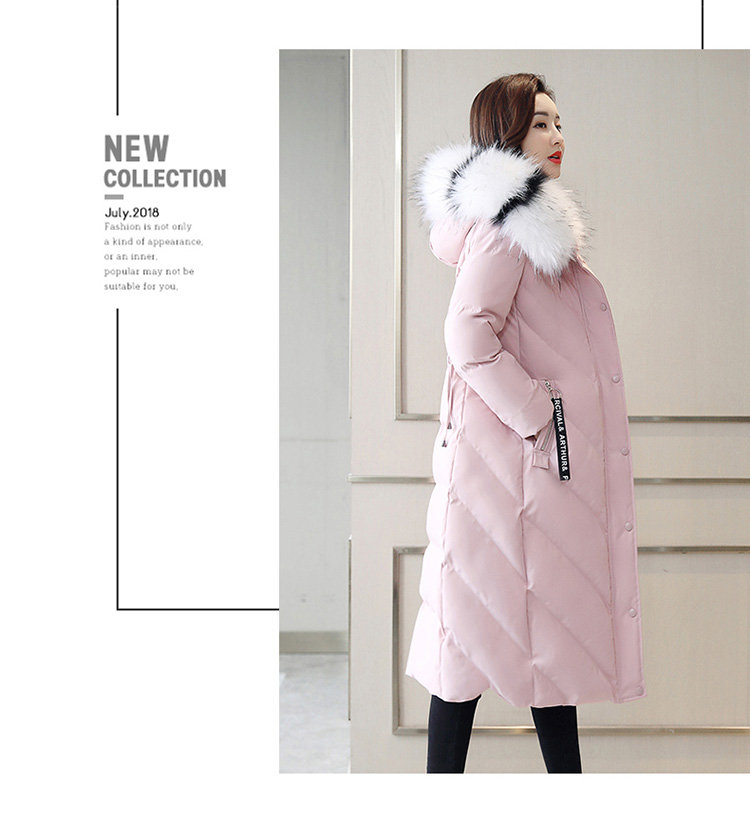 Корейские парки, женская зимняя куртка, женское розовое плотное пальто с капюшоном, теплое зимнее пальто, женская длинная парка с меховым воротником, хлопковые пальто