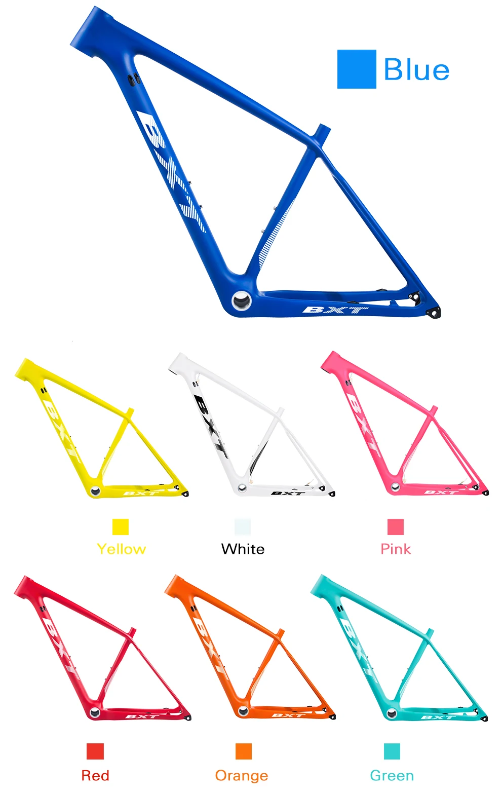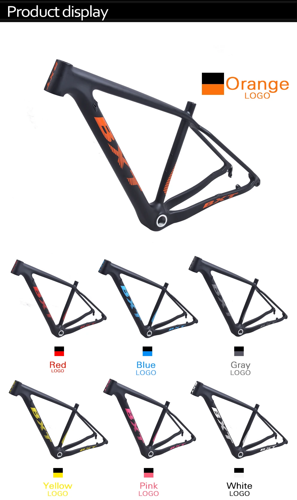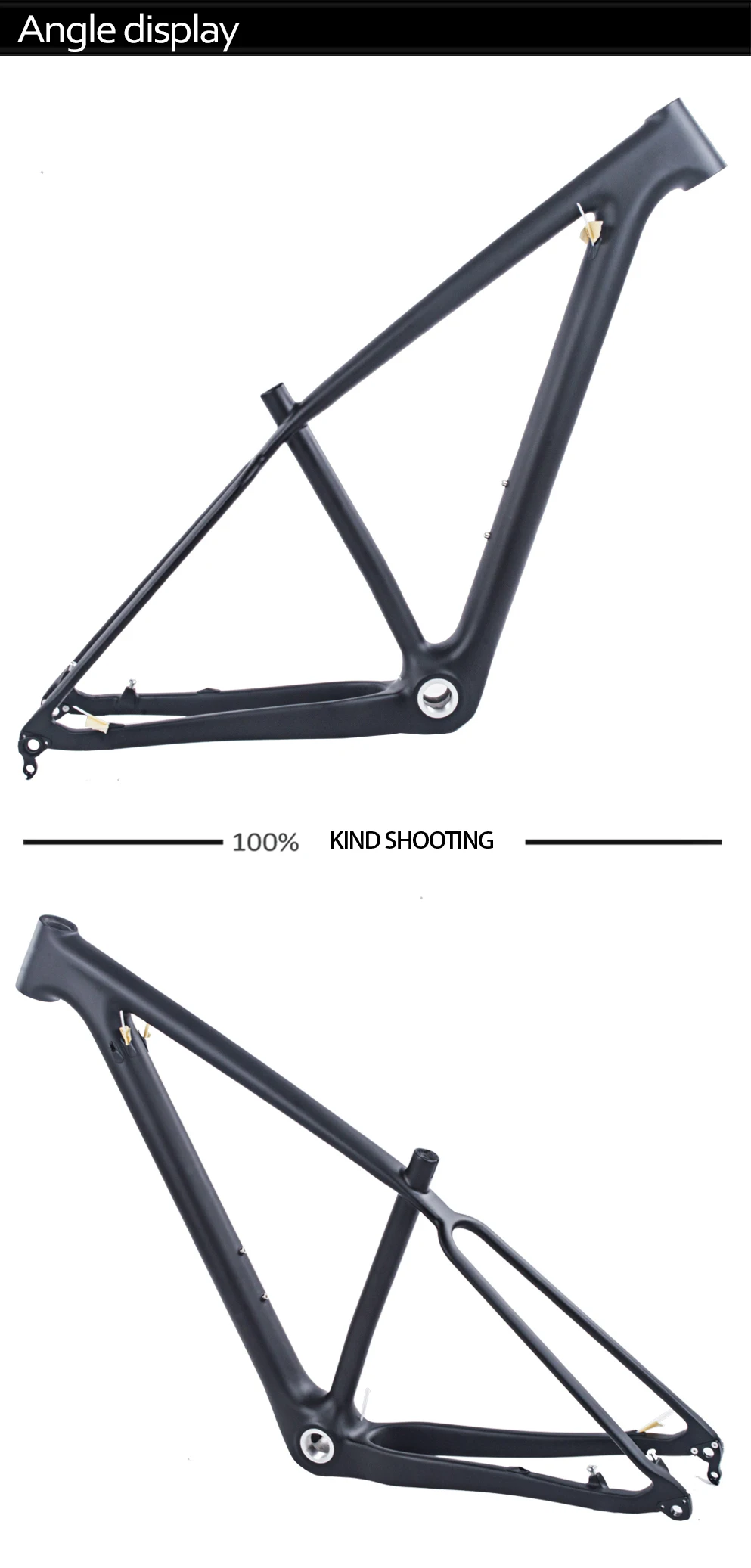 Название продукта: карбоновая рама mtb Материал: T800 углерода Модель: BXT-mtb-046 Ткань: UD Отделка: глянцевая/матовая Каретка: BSA Доступные размеры: s, m, l Размеры: 29er Размер заднего отверстия: 148*12 мм и 142*12 мм Вес: 1126 +-50 г (для размера M) Посылка включает в себя: 29 erFrame + гарнитура + зажим сиденья + через ось quick
