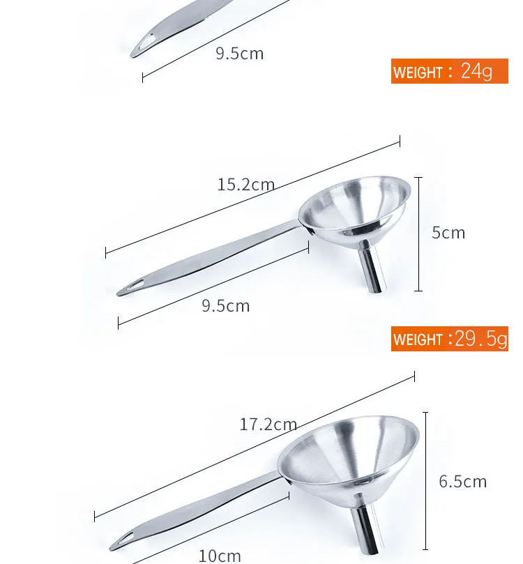 1. Материал из нержавеющей стали, безопасный и здоровый. 2. Легко чистить и легко хранить. 3. Многофункциональная воронка, вы можете использовать ее, чтобы масло/вода/вино было легче в бутылке!