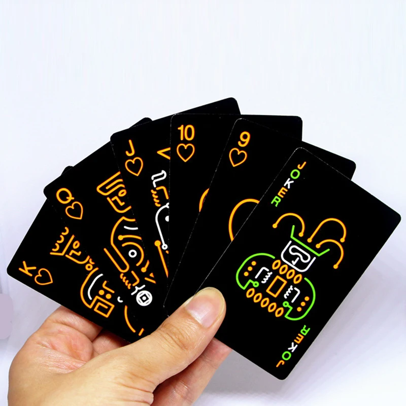 Черный светящийся флуоресцентный покер карты игральные карты светящиеся темные бар вечерние KTV ночь светящаяся коллекция специальный покер Примечание: Доставка осуществляется в случайном цвете, пожалуйста, обратите внимание на это, нет предложений по выбору цвета.