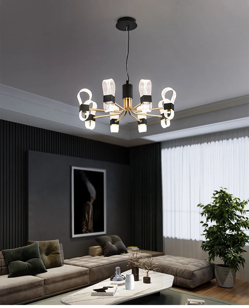 Современная доступная роскошная люстра, Золотая светодиодная Подвесная лампа, черный прозрачный уникальный дизайн для гостиной, спальни, украшения