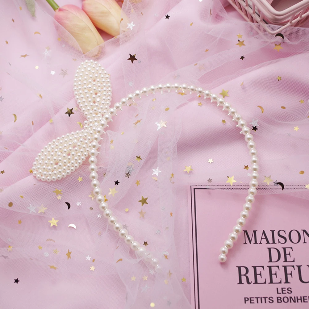 Модный обруч для волос с кошачьими кроличьими ушками из искусственного жемчуга и бусин, украшение для украшения