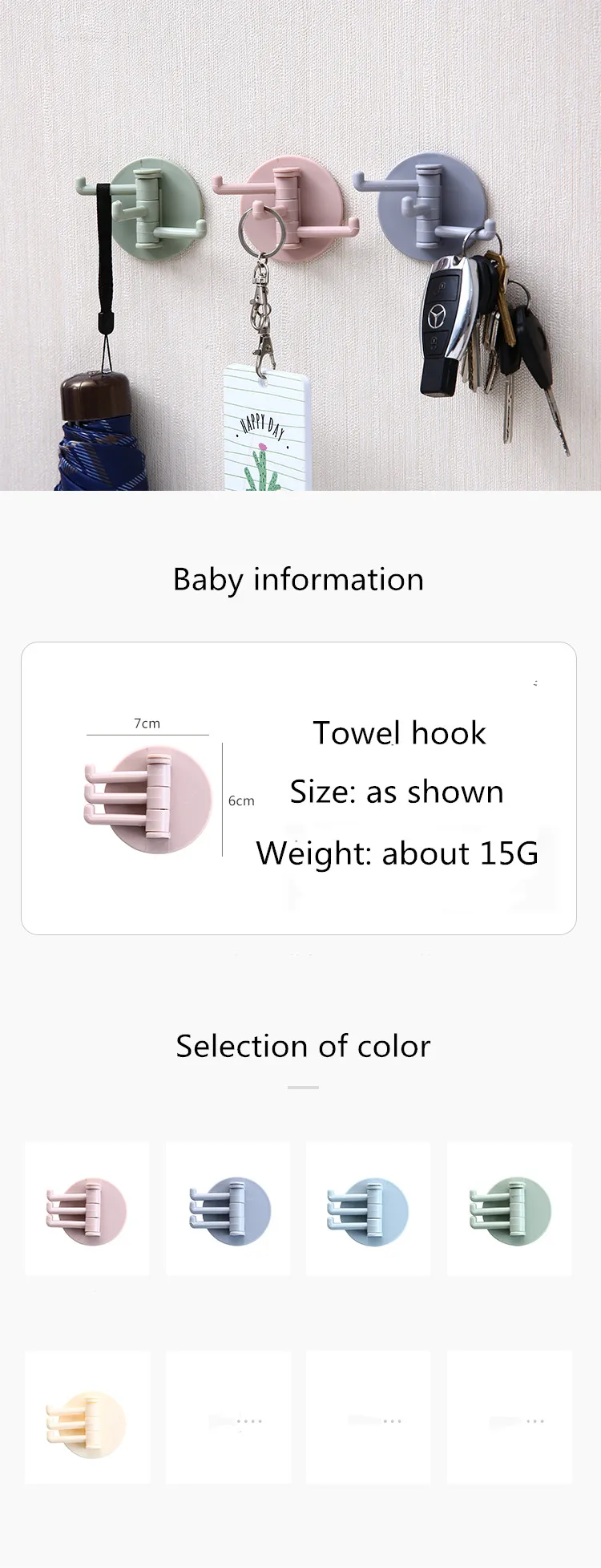 Вращающийся крючок, крепкая клейкая вешалка для полотенец, настенная стойка для ванной, Бесплатная Пробивка, без следов