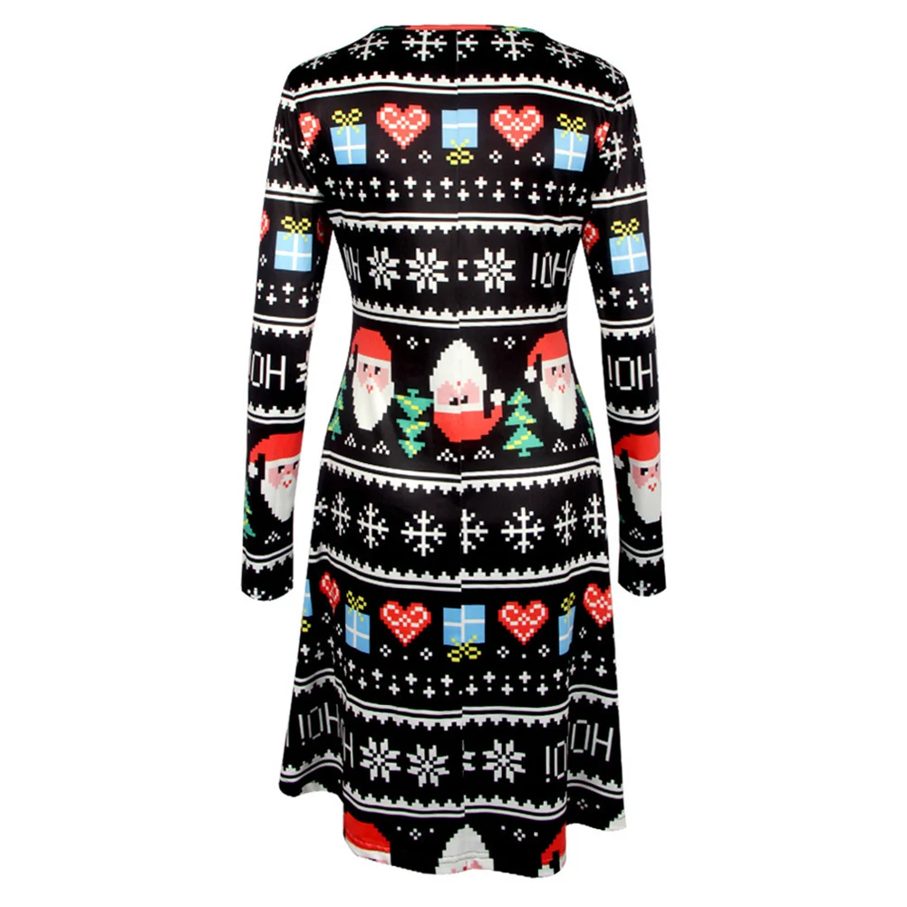 Рождественское женское облегающее ТРАПЕЦИЕВИДНОЕ ПЛАТЬЕ с круглым вырезом и принтом Санта-снеговика