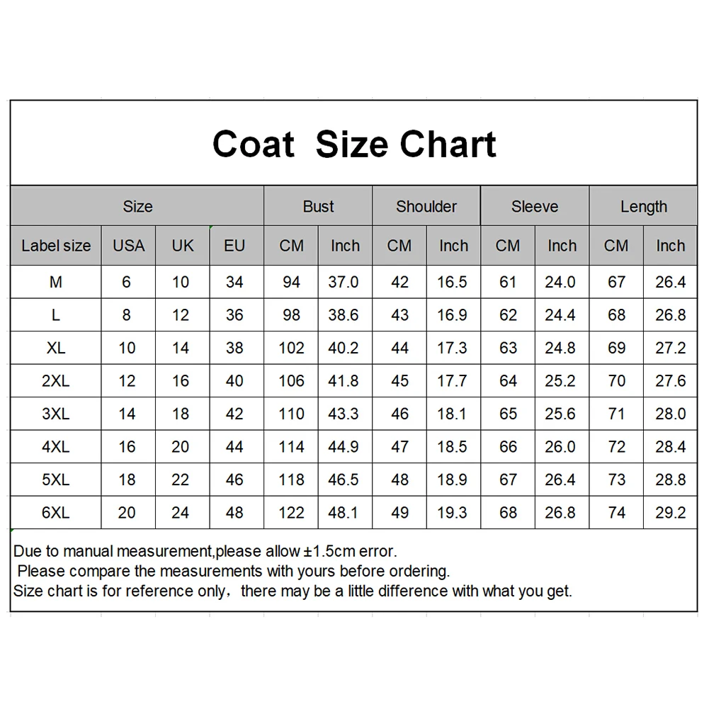 [Our Size 6XL] Bust: 122cm/48.03", Shoulder: 49cm/19.29", Length: 74cm/29.13", Sleeve: 68cm/26.77" (Approx.)