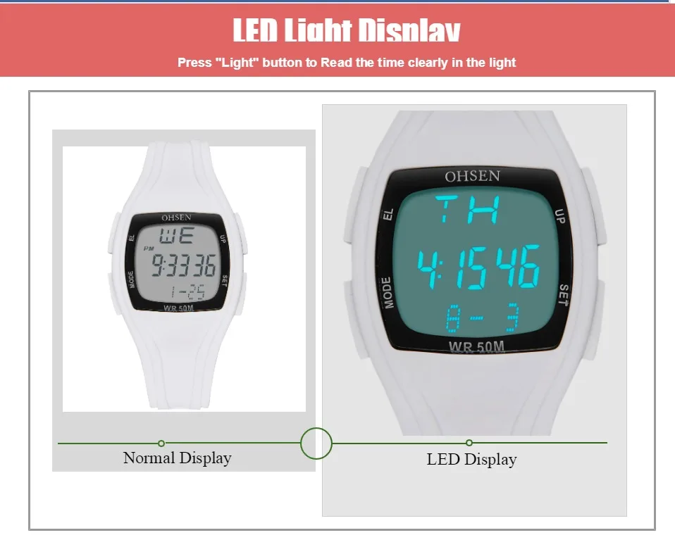 Дополнительная функция подсветки ЖК-дисплея для четкого отображения времени в темноте