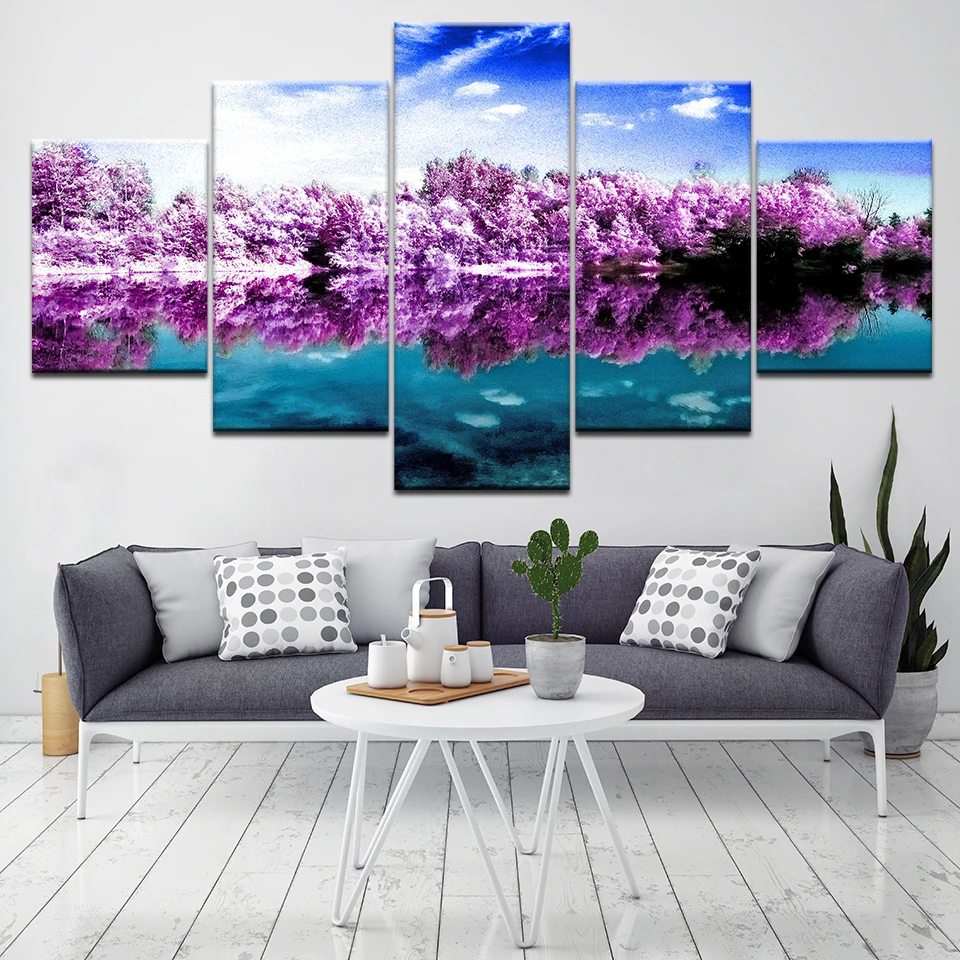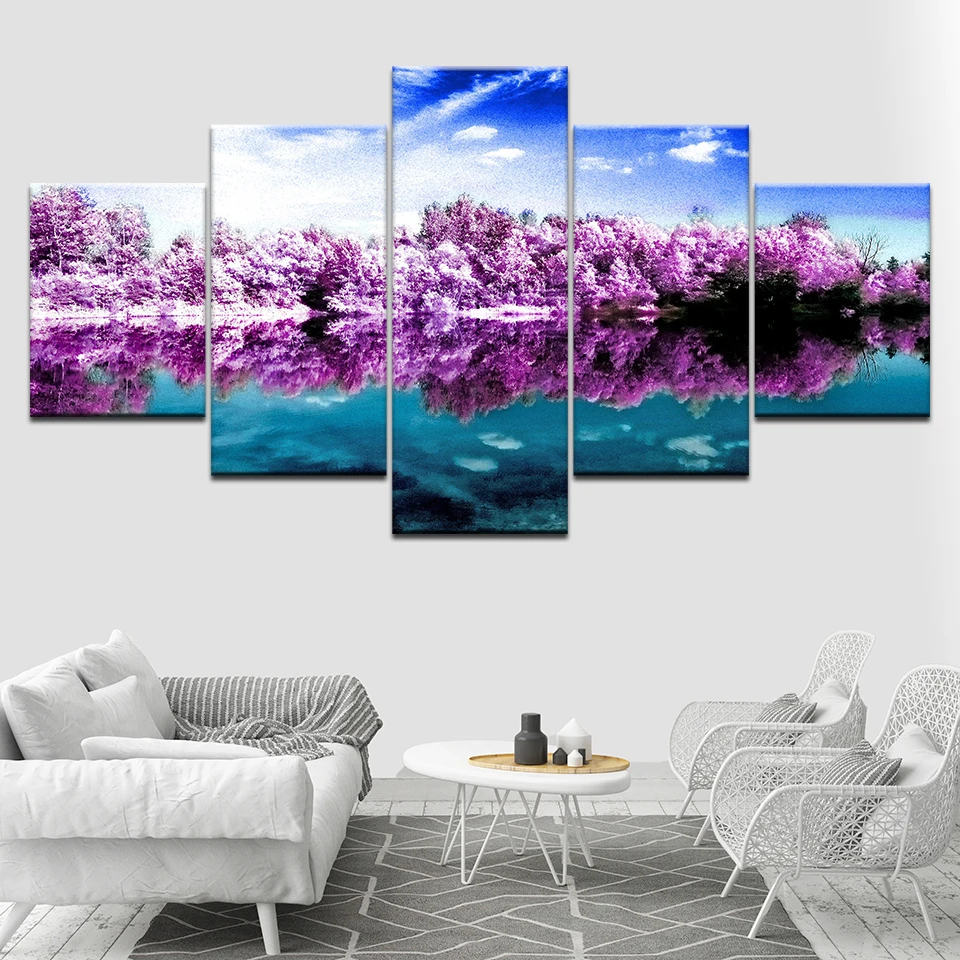 Modname = ckeditorПейзаж с фиолетовым лесом, 5 шт., холст, обои, современный постер, модульная художественная живопись для гостиной, домашнего декора