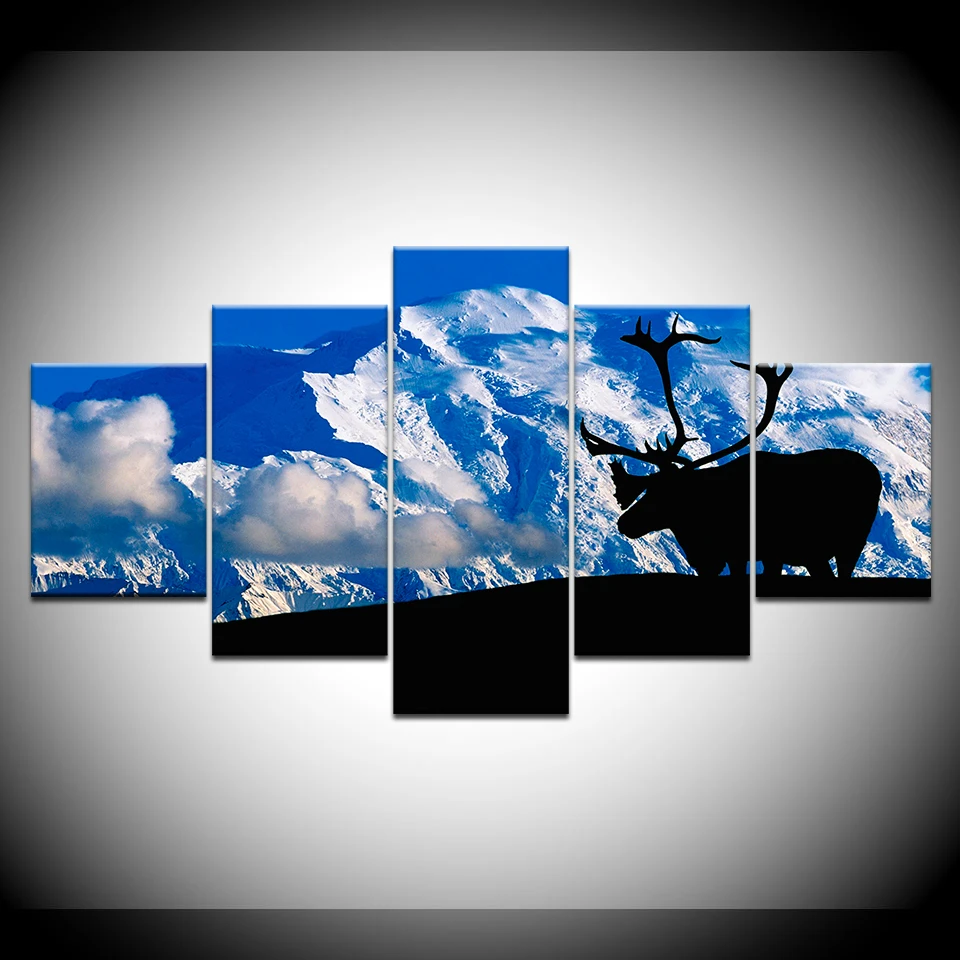 modname=ckeditorCanvas Painting The deer and ice mountain 5 Pieces Wall Art Painting Modular Wallpapers Poster Print for living room Home Decor