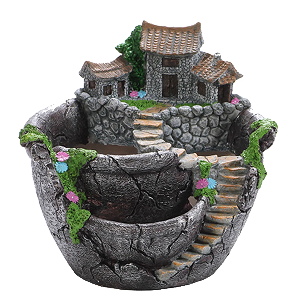 Resin Succulent Plant Bonsai Flower Pot Garden Planter Office Home Holder Decor