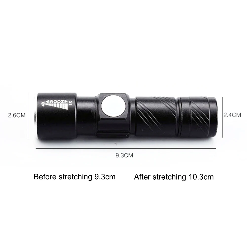 - Rubber waterproof switch, both a switch and a charging indicator. Telescopic zoom for easy and simple carrying.