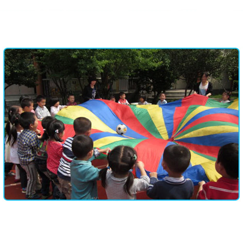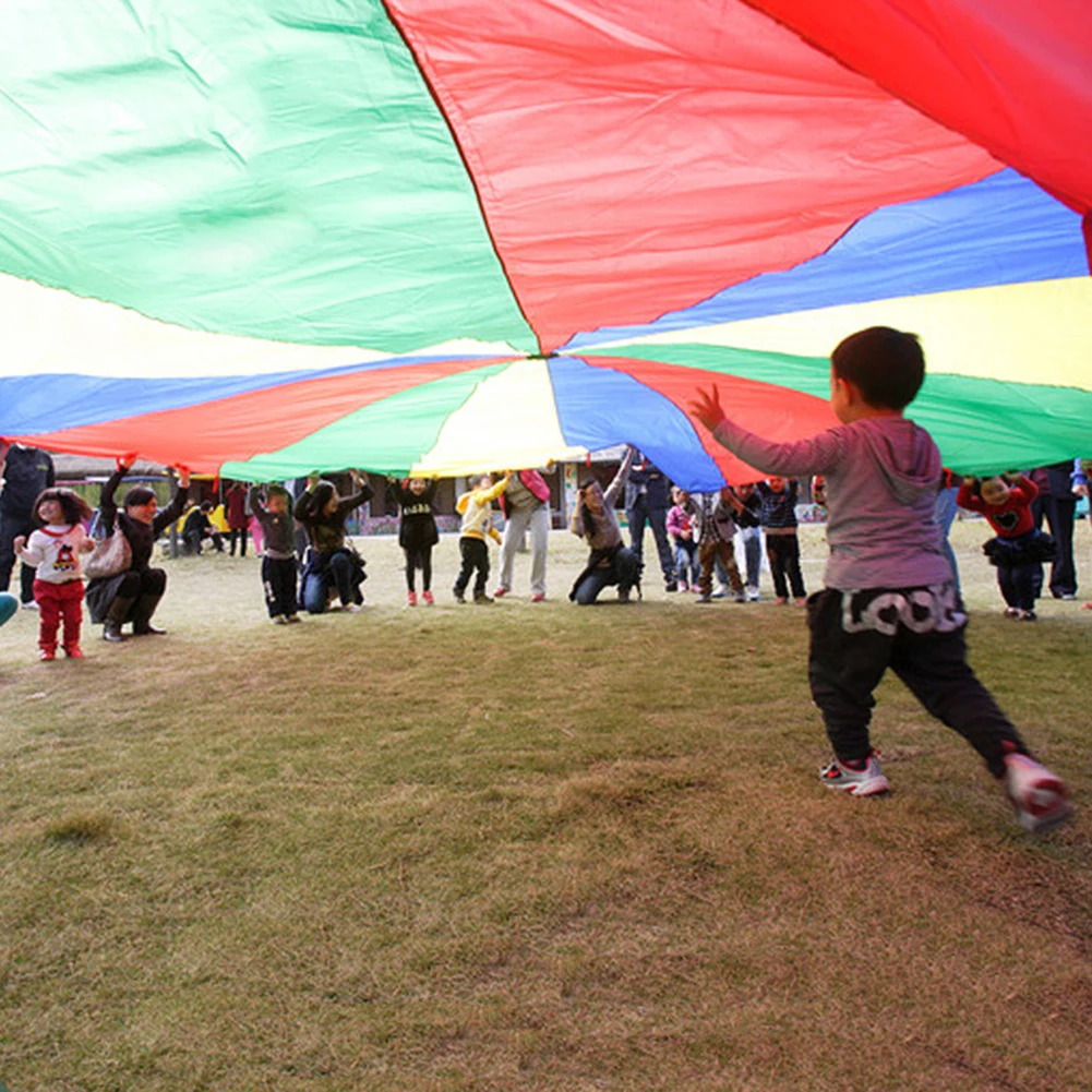 Kids Rainbow Play Parachute with Handles Outdoor Teamwork Game Interactive Toy