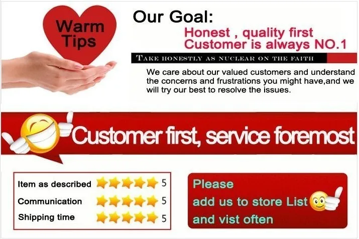 * Все предложения подкреплены нашей 100% гарантией удовлетворенности, если вы не удовлетворены по разумной причине. Вы можете вернуть товар в его первоначальном состоянии для возврата или обмена, прежде чем отправить нам по электронной почте. Пожалуйста, свяжитесь с нами для получения подробной инструкции по возврату обмена? Мы вернем все ваши деньги, кроме стоимости доставки и обработки после того, как мы получим ваши возвращенные товары?
