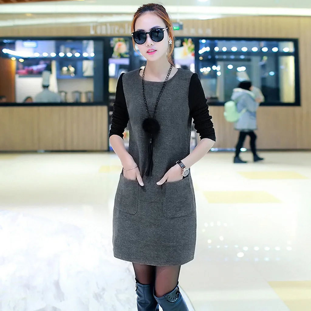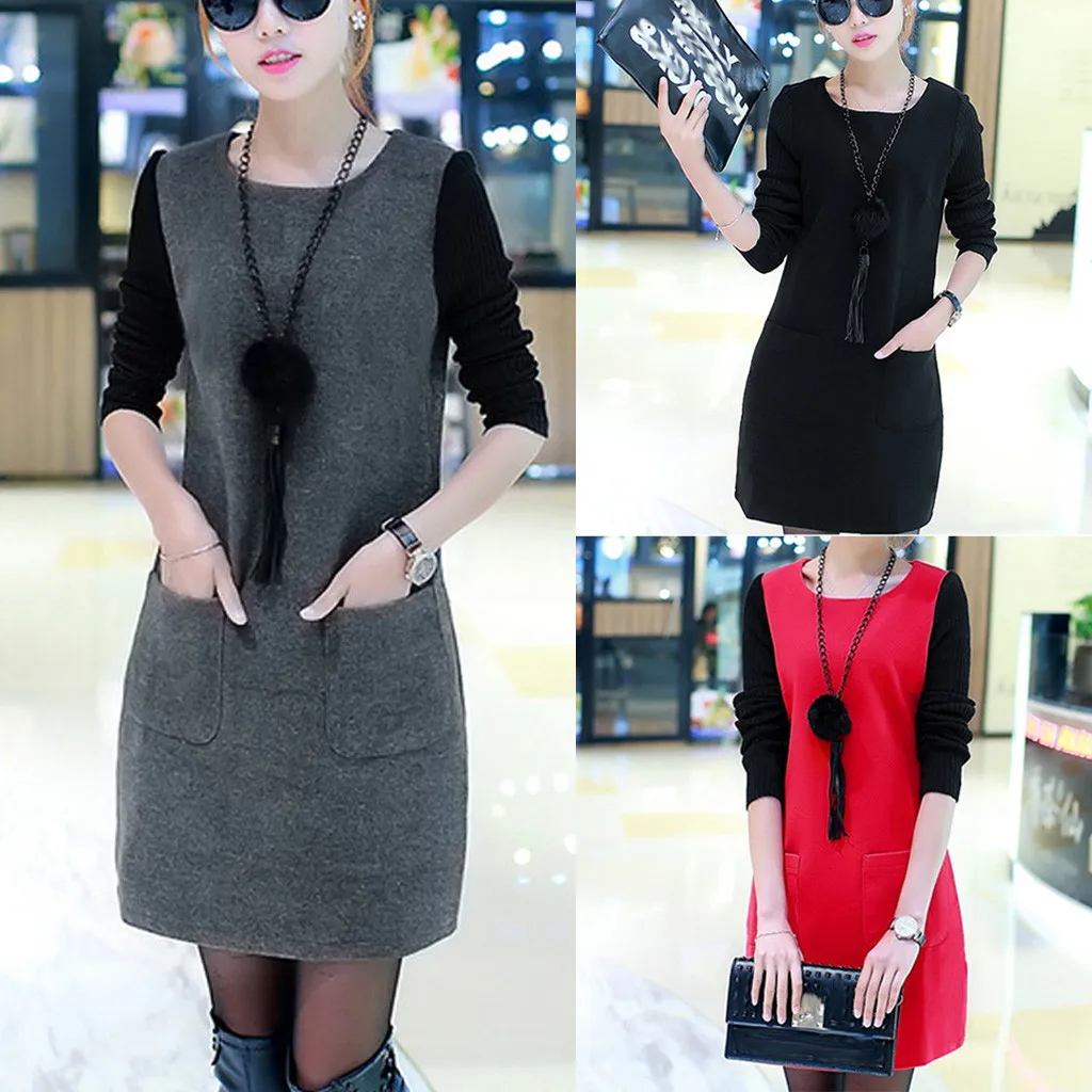 Особенности:Длинный рукав, Свободный, Сращивание, плюс бархат,Стильный и модный дизайн,Весна, осень и зимаПовседневное платье.