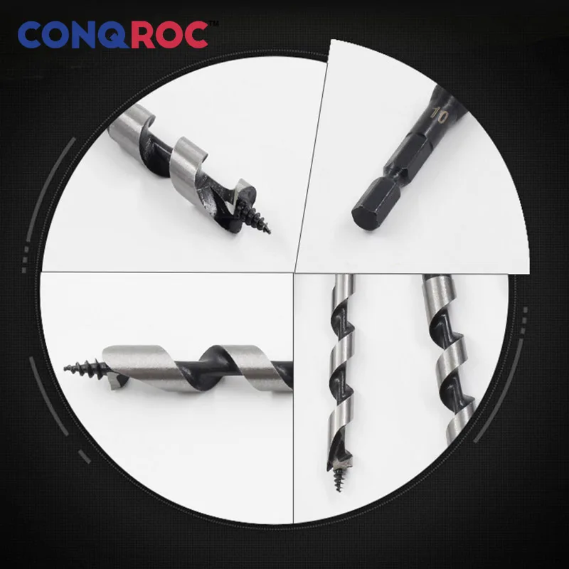 It is suitable for using on wood, in the use of the drill bit will self drilling wood, very labor-saving. Suitable for use on all soft & hard woods,they are ideal for through-holes. The Auger Drill set features Precision ground, hardened high carbon steel auger bits. Creates Fine pitch spiral pulls auger into workpiece and single spur slices timber ahead of the cutting edge, producing accurate holes.