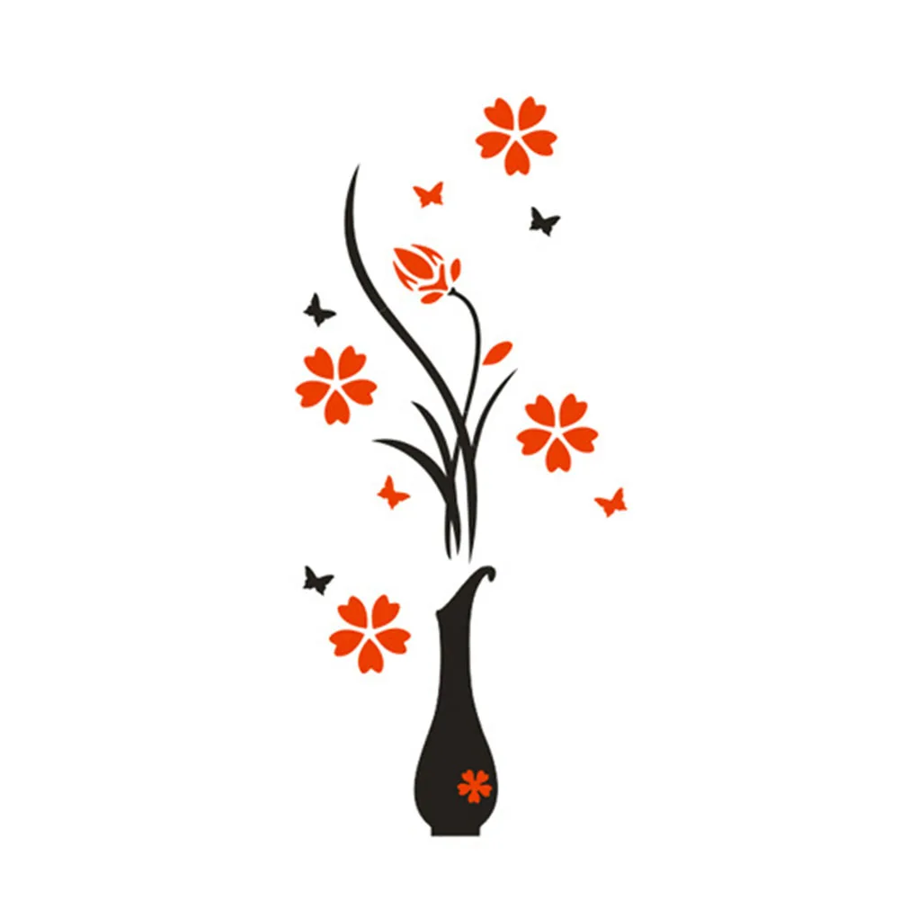 3D вазы сливы цветок Съемная зеркальная Настенная Наклейка домашний декор прихожей
