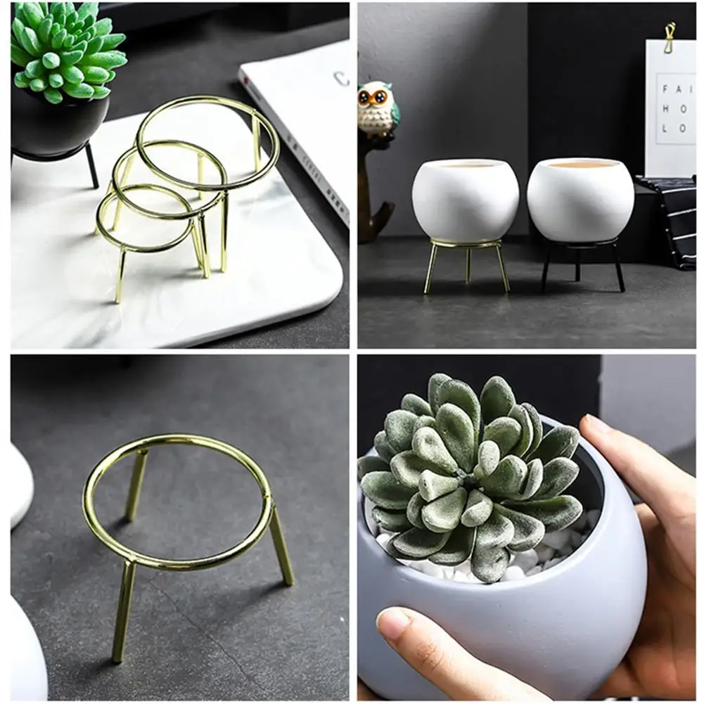 Белый керамический Средний суккулент кактус цветочное растение шестигранные горшки с металлической подставкой Держатель для дома открытый домашний сад Декор