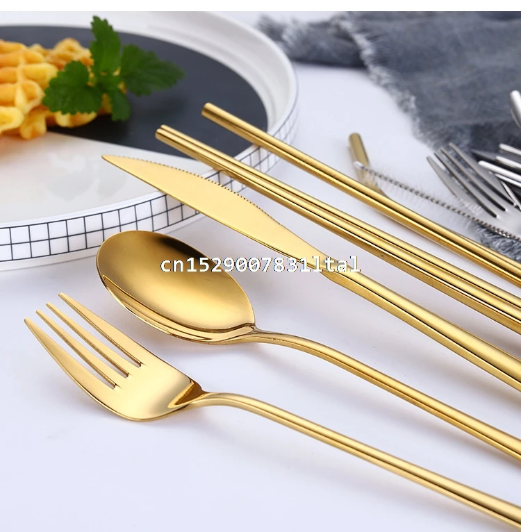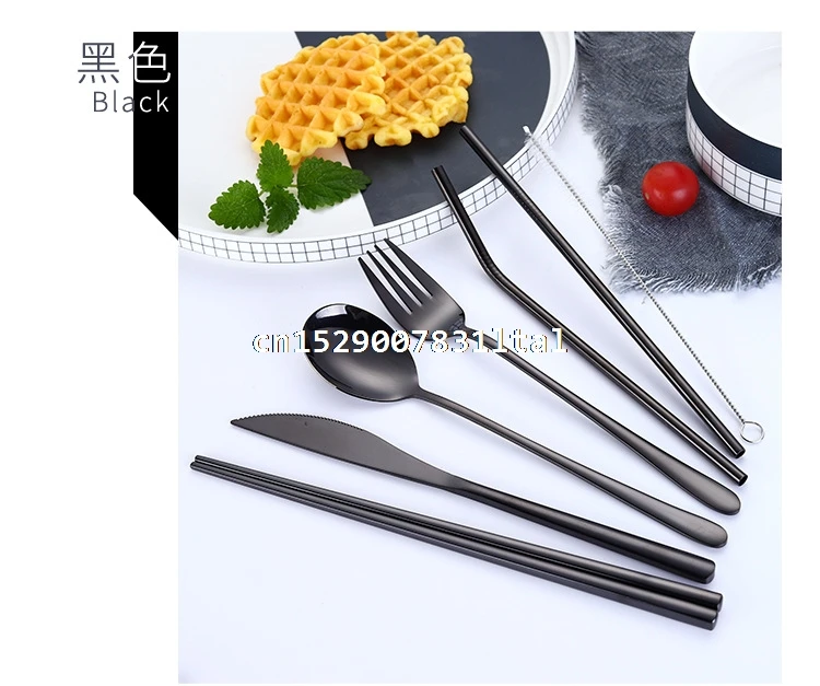 Набор посуды, включая палочки для еды, ложку, вилку, соломинку, портативный и простойВышитыми логотипами.