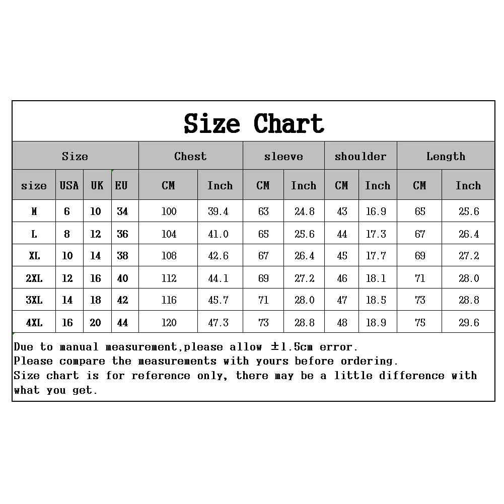 [Наш Размер 4XL] Обхват груди: 120 см/45,7 дюйма, рукав: 73 см/28,8 дюйма, ширина плеч: 48 см/18,9 дюйма, длина: 75 см/29,6 дюйма (прибл.)