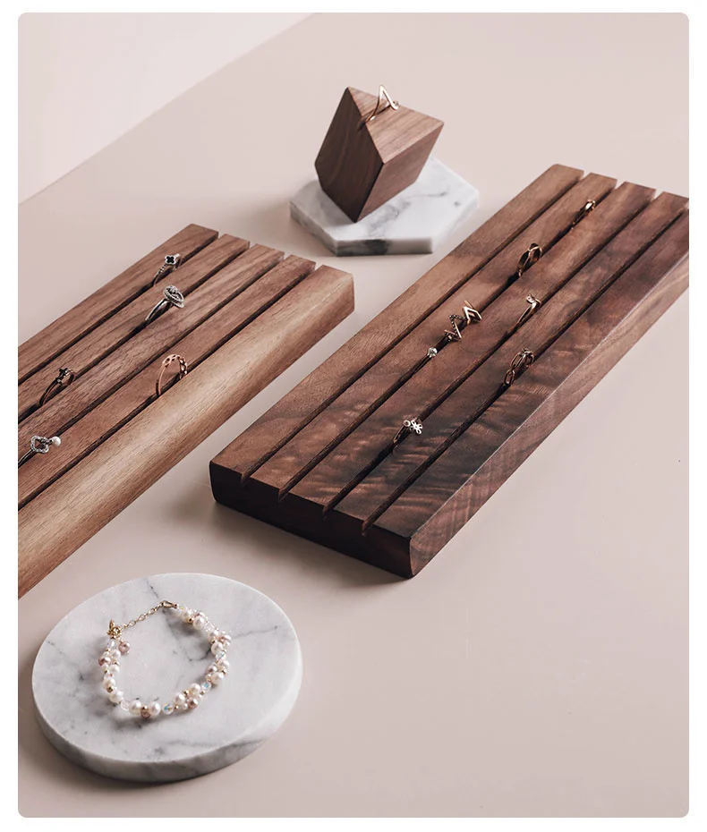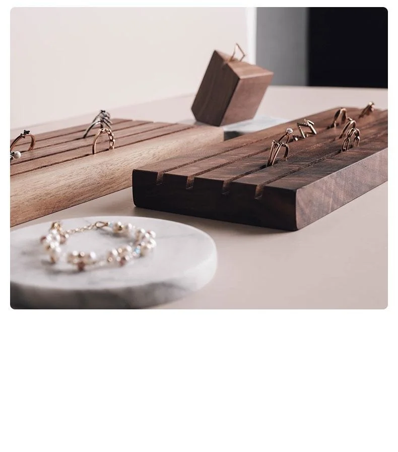 Черный орех Серьги Дисплей лоток набор уха ногтей кольцо браслет держатель висячая полка стол кольцо паллет деревянный блок дисплей блюдо