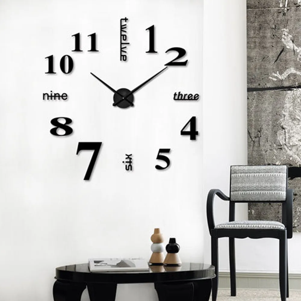 Acrylic Modern DIY Wall Clock 3D Mirror Surface Sticker Home Office Decor