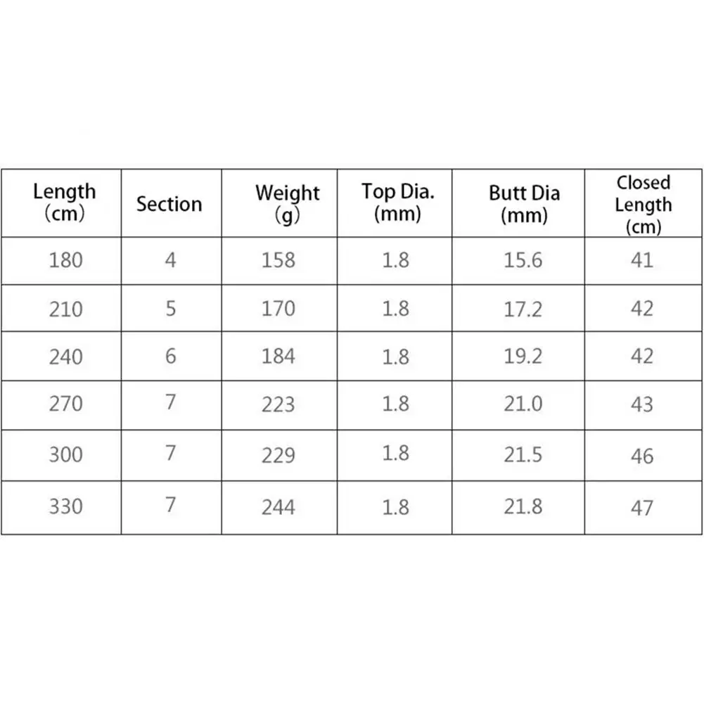 Характеристики: 1,8 м, 2,1 м, 2,4 м, 2,7 м, 3,0 м, 3,3 м