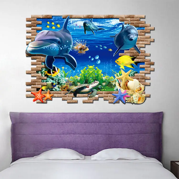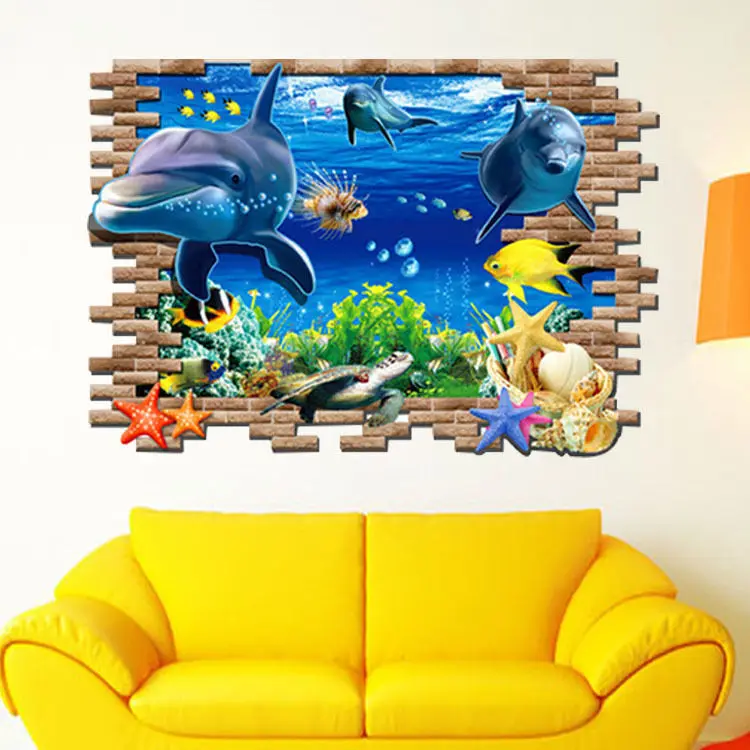 Посылка:1 *3D стикер на стену с изображением дельфина океана