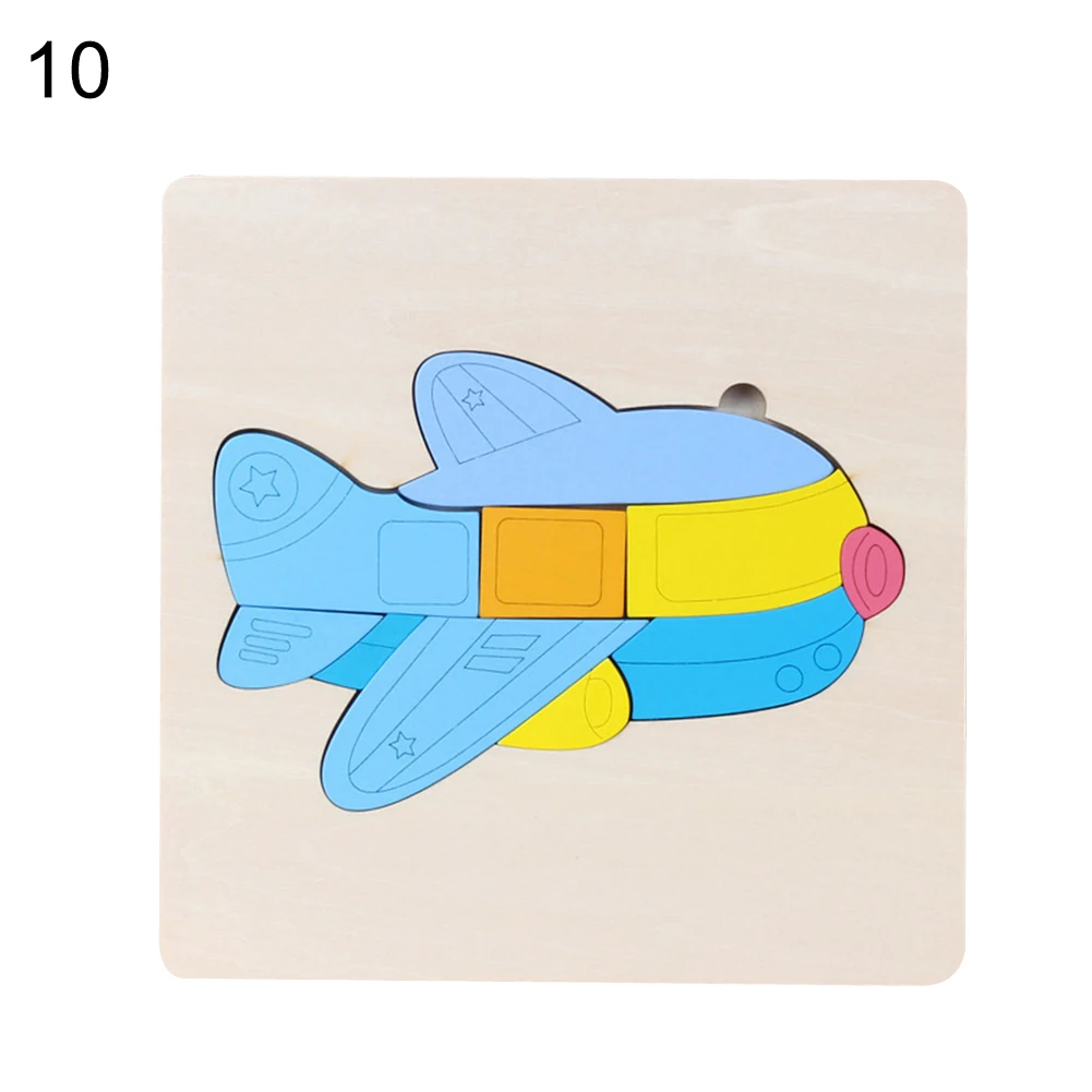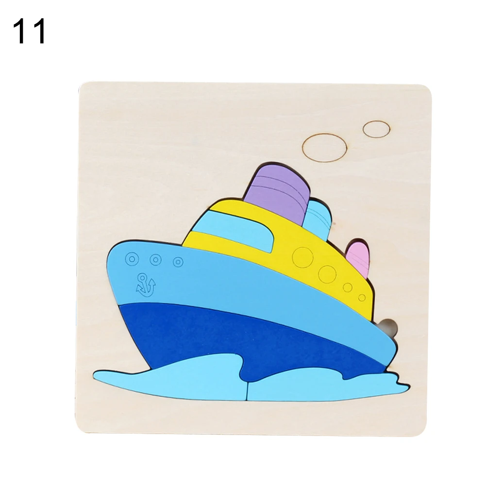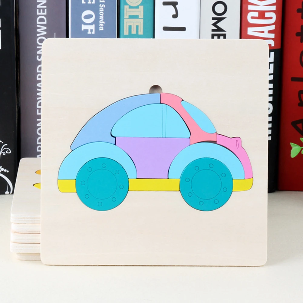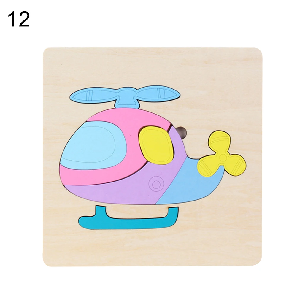 Wooden Animal Vehicle 3D Colorful Chunky Jigsaw Puzzle Board Education Kids Toy