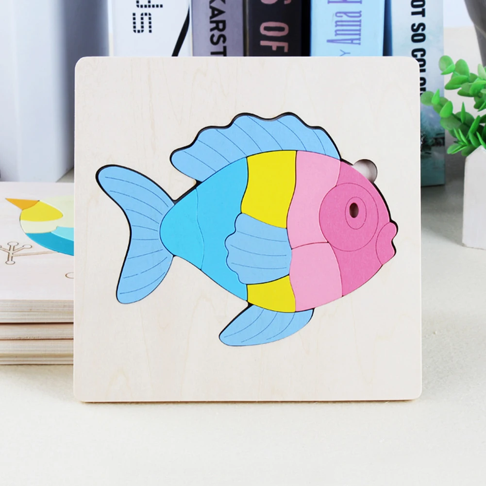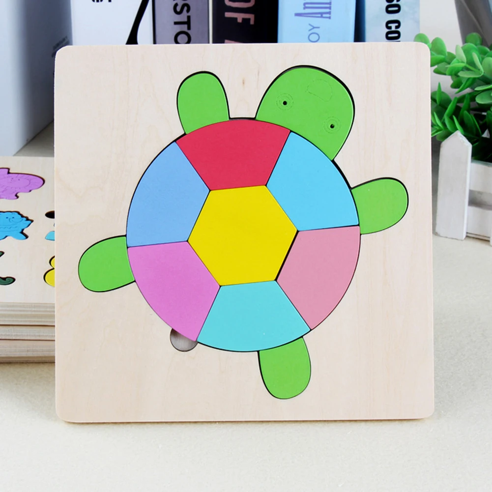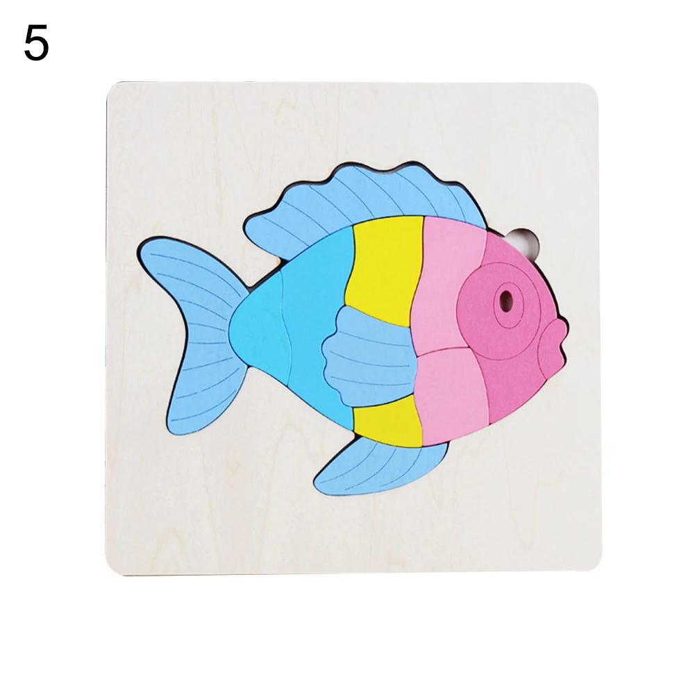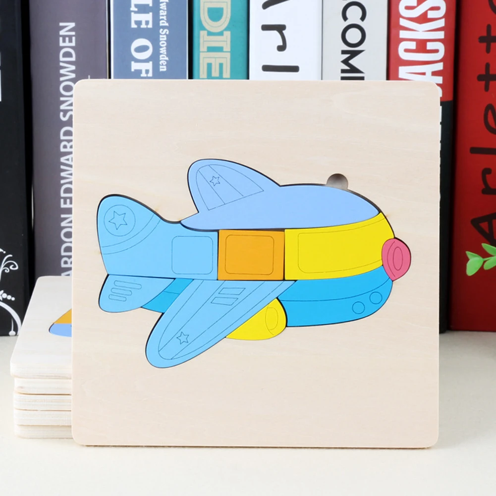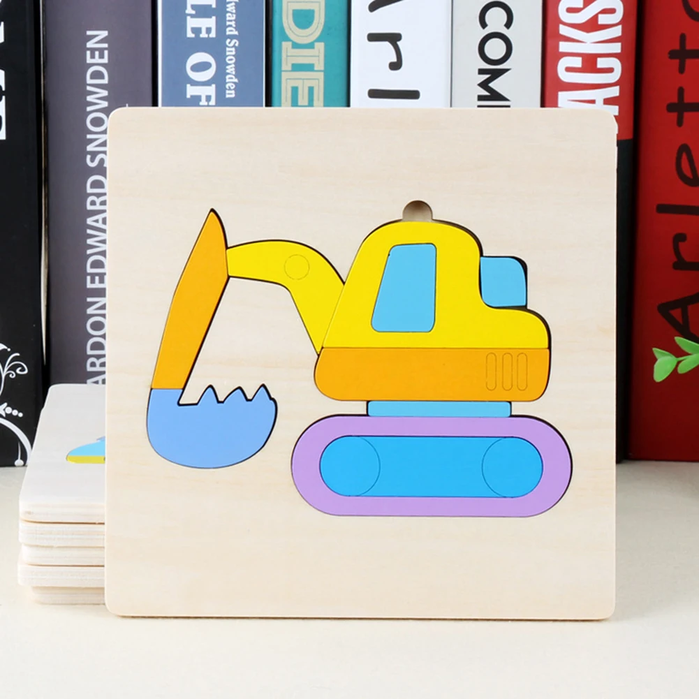 Wooden Animal Vehicle 3D Colorful Chunky Jigsaw Puzzle Board Education Kids Toy