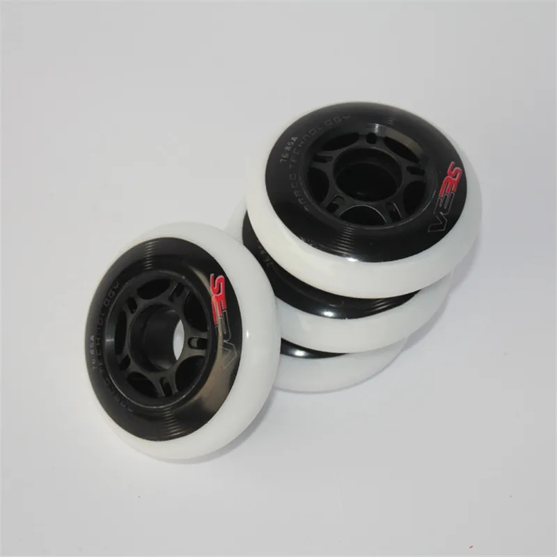 1. Белый цвет 2. Размеры 72 мм, 76 мм, 80 мм 3. 85A твердость костюм для FSK Слалом Катание на коньках