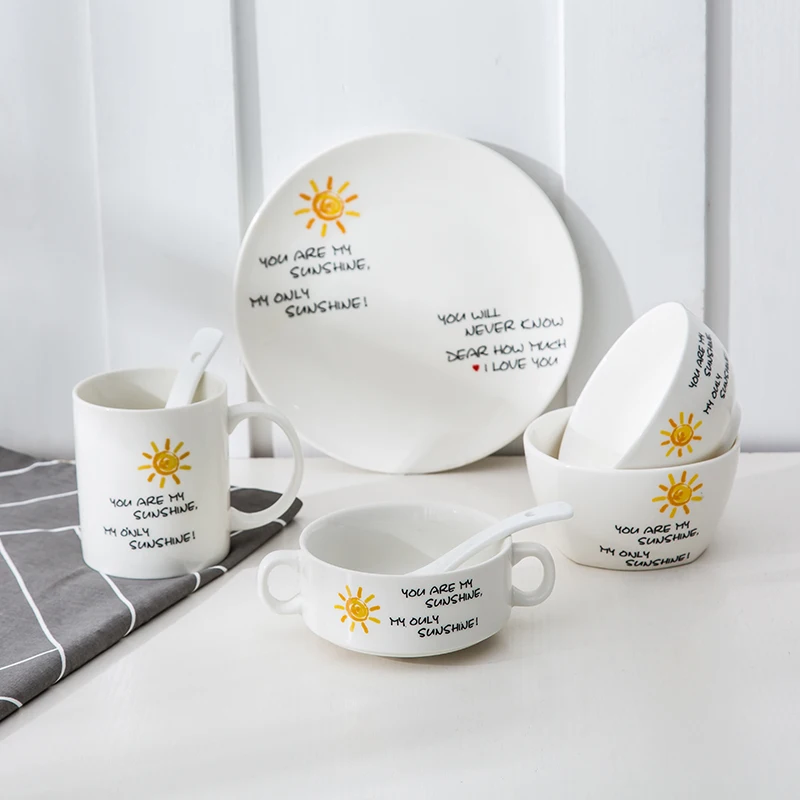 Набор креативных керамических столовых приборов, китайская бытовая посуда, посуда, ложка, чашка, рисовый салат, миска для лапши