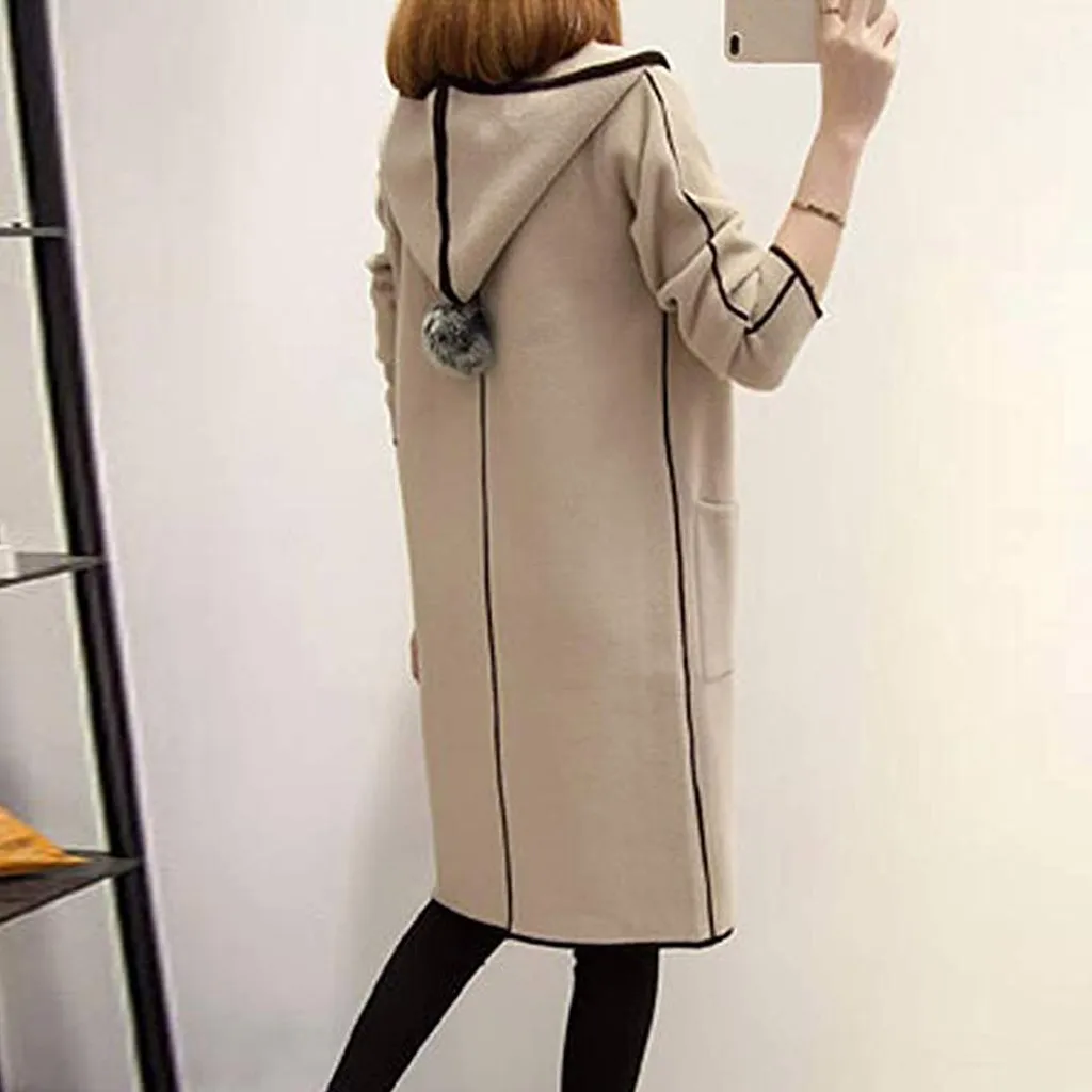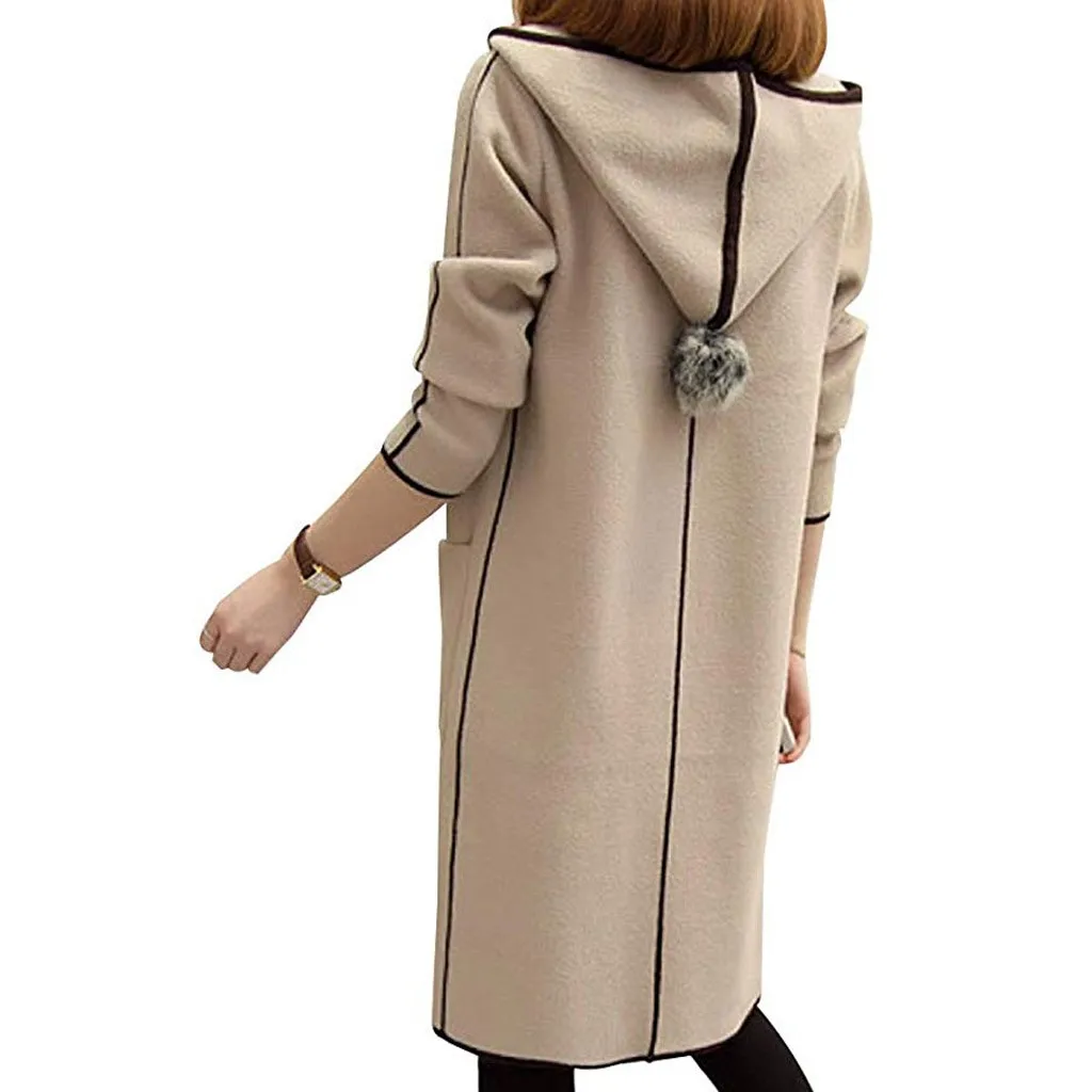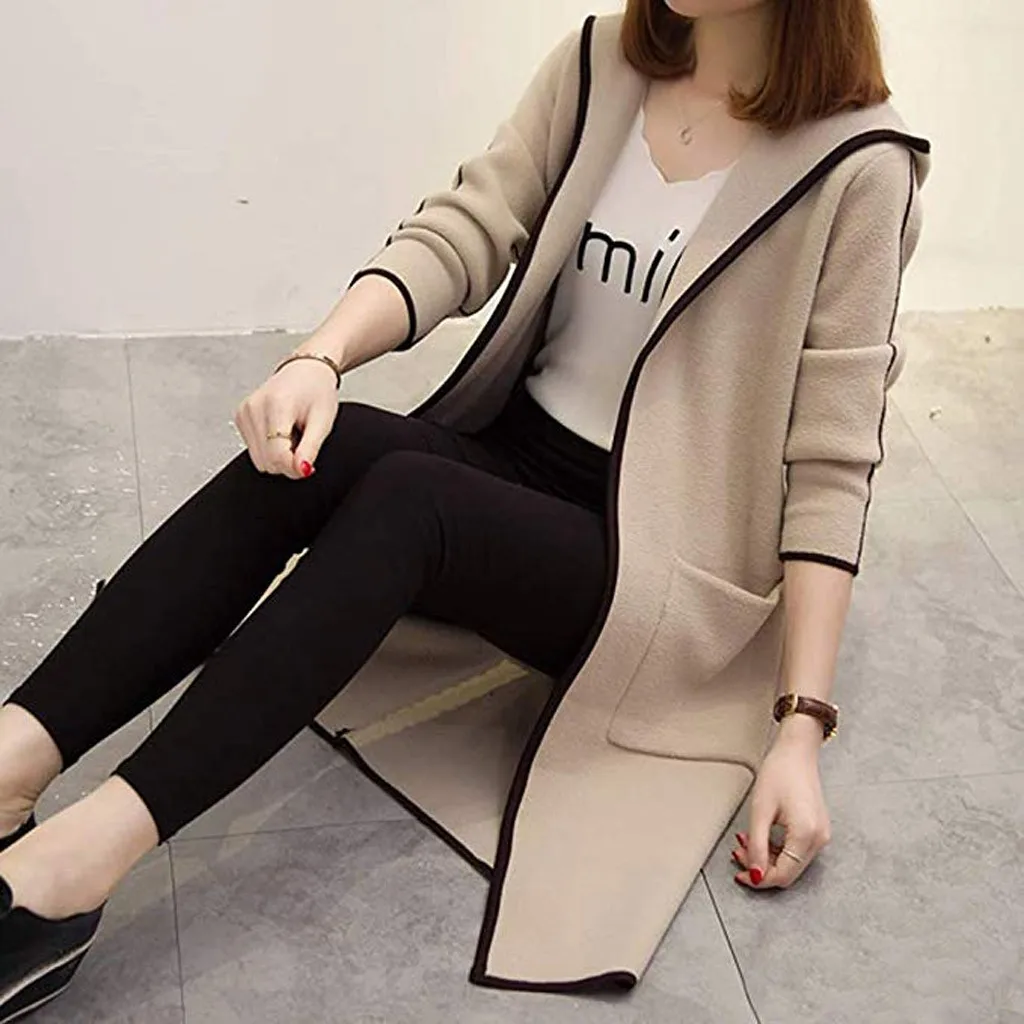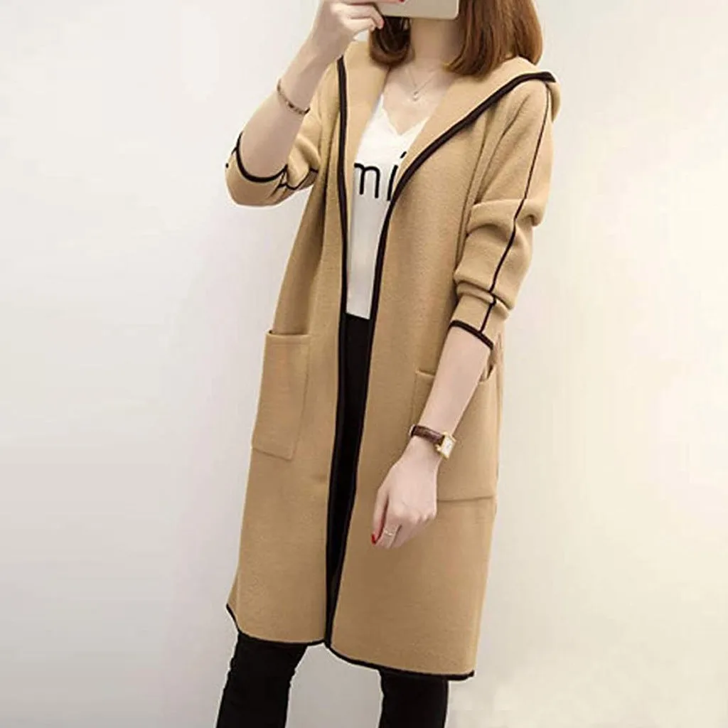 Женская Повседневная однотонная верхняя одежда с карманами, кардиган, пальто с капюшоном и длинными рукавами
