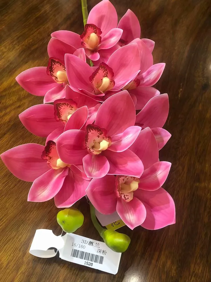 Название цветка: Орхидея цимбидия Общая длина цветка: 75 см Материал цветка: ткань с латексным покрытием (настоящий сенсорный материал) Количество цветов 50 стеблей Цена не включает вазу