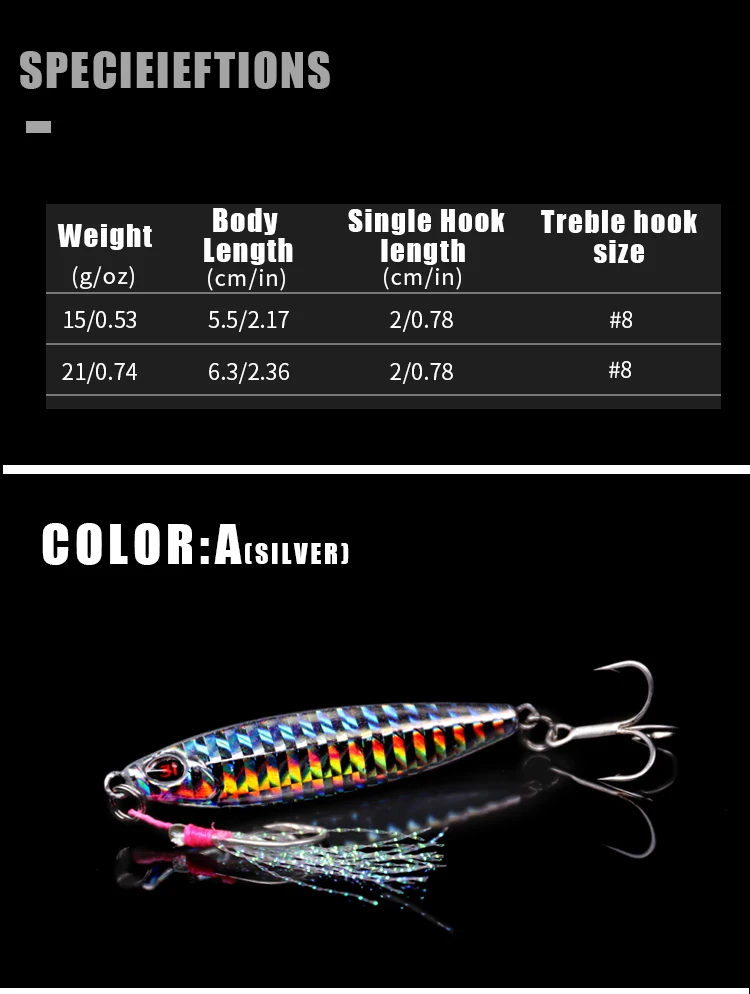 Металлические приманки с красивым и привлекательным цветом, 3D глаза выглядят полностью реальными и Крючки заточены, двойная помощь, соединены с помощью тяжелых колец, достаточно сильны, чтобы справиться с мощными пробежками, зубы и ударная головка действия пелагических видов.