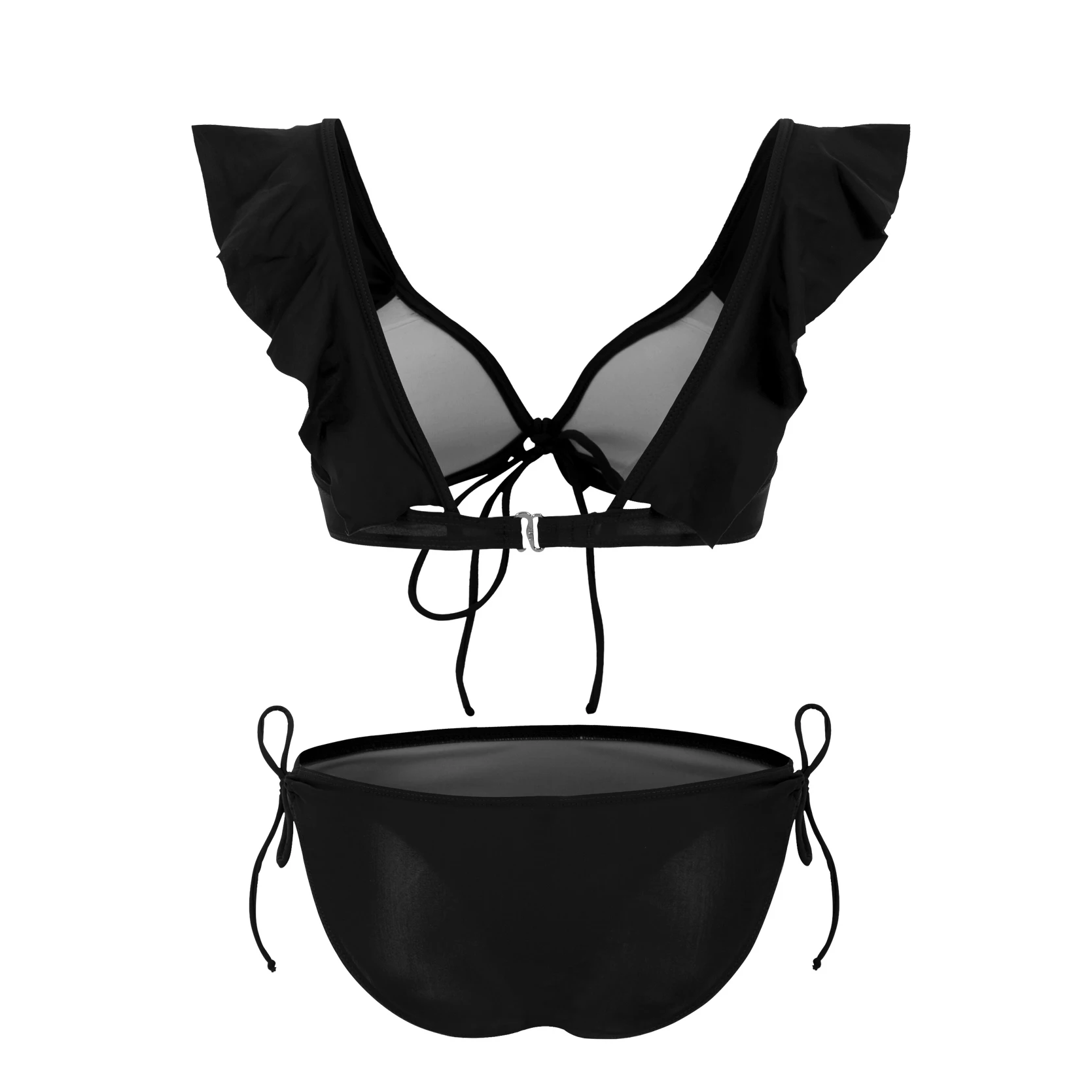 Сексуальный черный супер пуш-ап бикини 2020, купальник с рюшами, женский купальник с завязками по бокам, пляжная одежда, купальный костюм