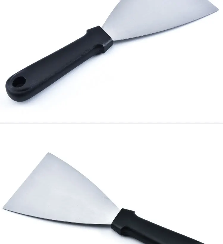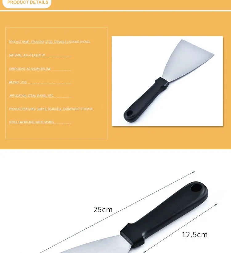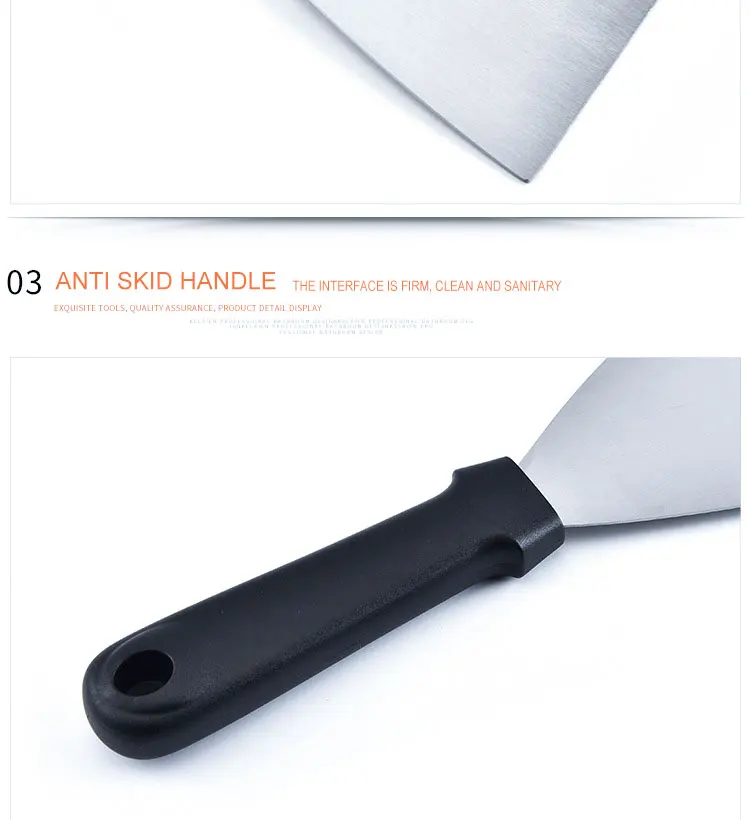 1. Нержавеющая сталь, безопасная и здоровая. 2. Многофункциональный 2 способа использования, это резак, это лопата. 3. Анти-обжиг, также легко чистить и хранить.