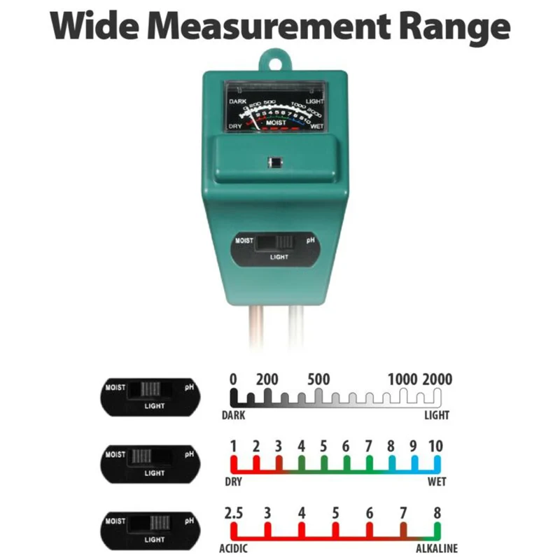 *РаботаХорошо в овощных садах, садах, газонах и горшечных растениях. Лучший способ обеспечить, чтобы ваши растения полностью раскрыли свой потенциал, это определить, правильно ли ваши условия почвы. Ph-метр может не только указывать на Щелочность илиАCidity в грунте, также может измерять содержание влаги и количество светильник.